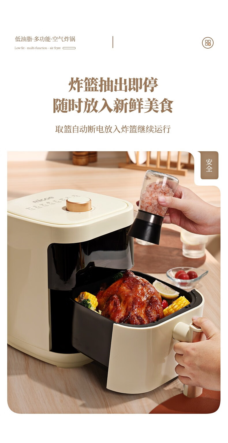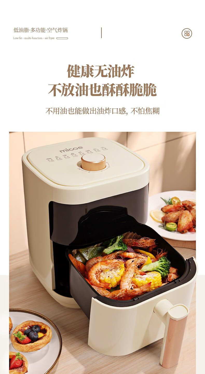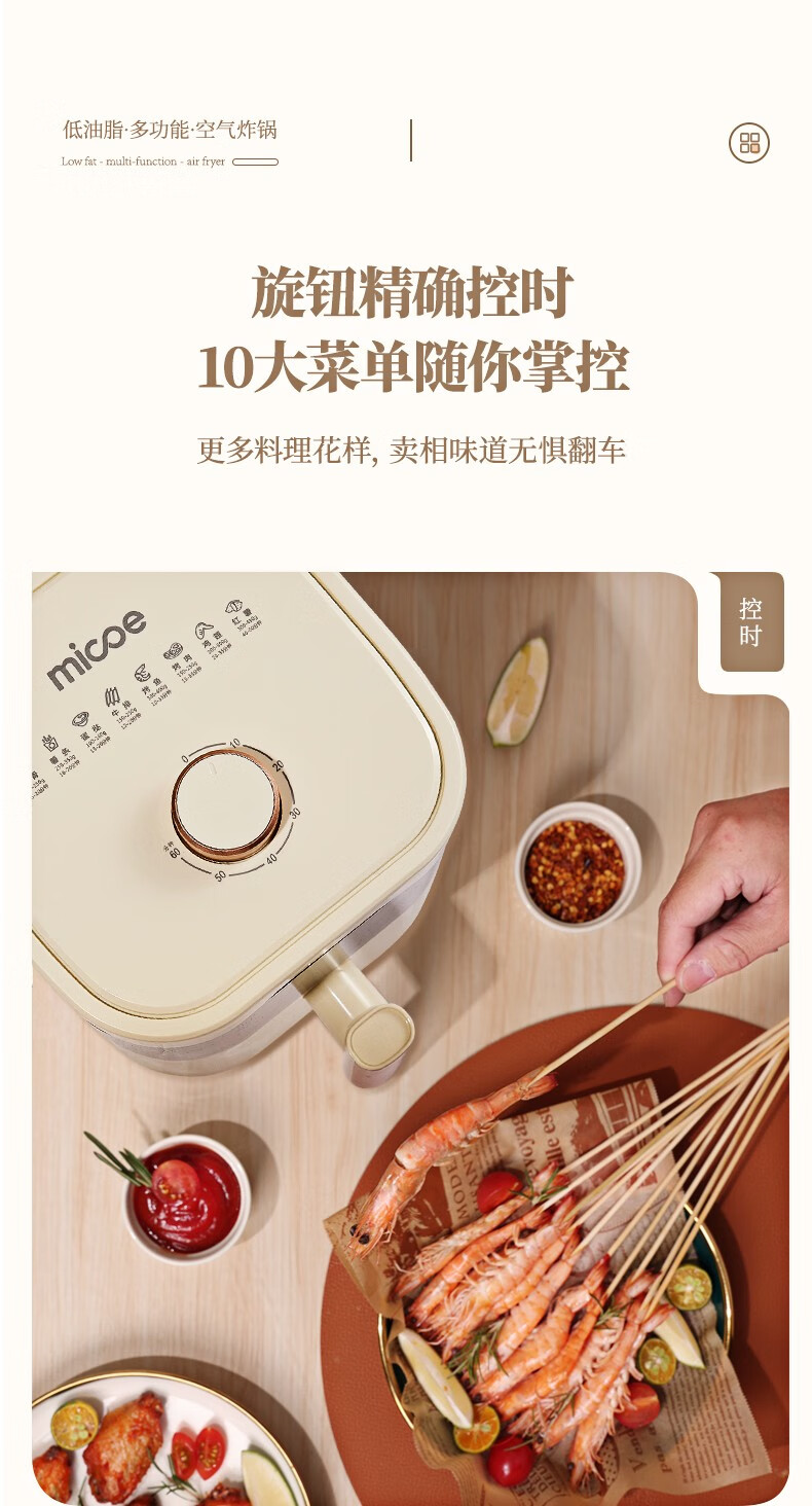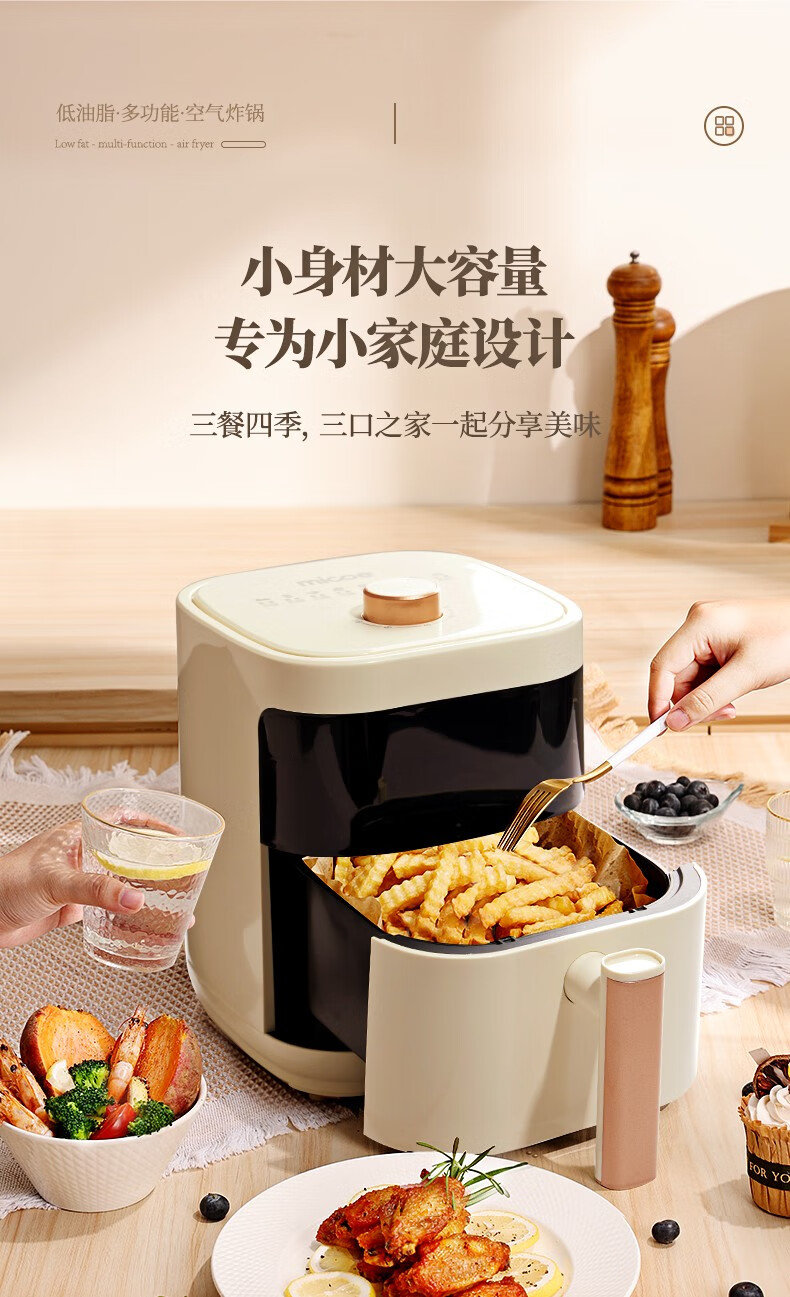 四季沐歌(MICOE) 空气炸锅3L大容量家用智能触屏定时多功能无油烟电炸锅不沾低脂煎炸锅薯条机 升级款 JRK-225A