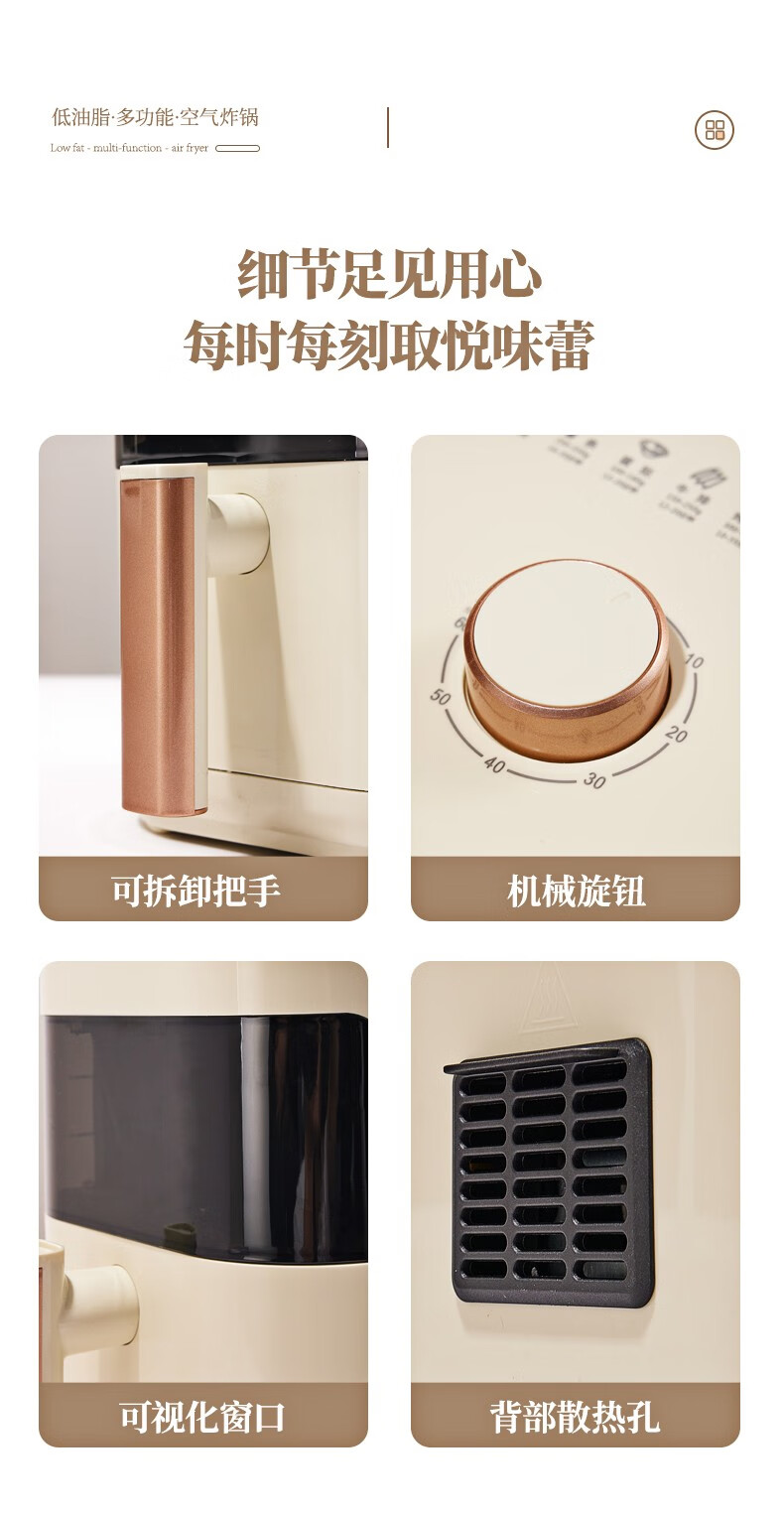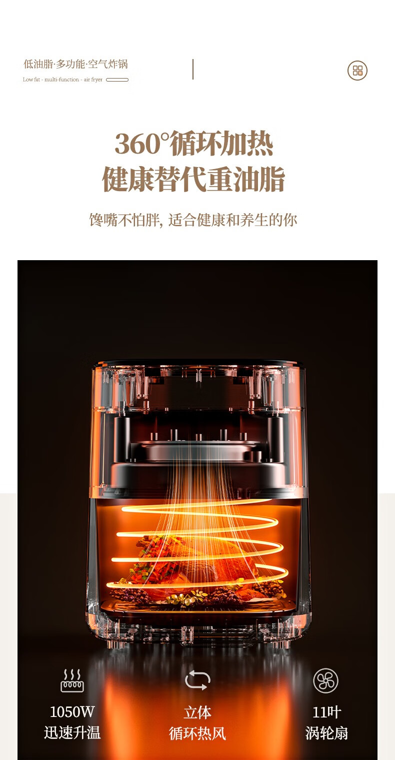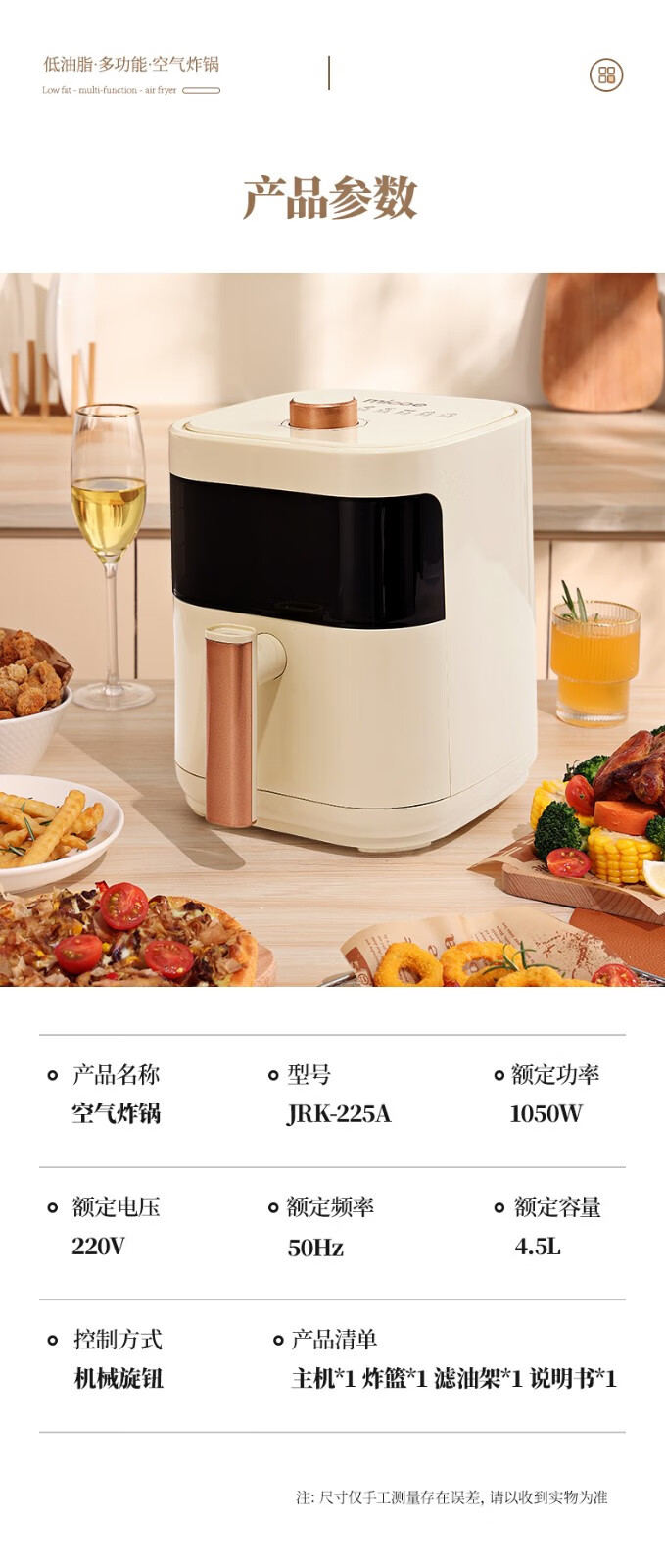 四季沐歌(MICOE) 空气炸锅3L大容量家用智能触屏定时多功能无油烟电炸锅不沾低脂煎炸锅薯条机 升级款 JRK-225A