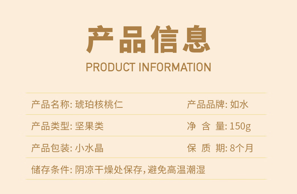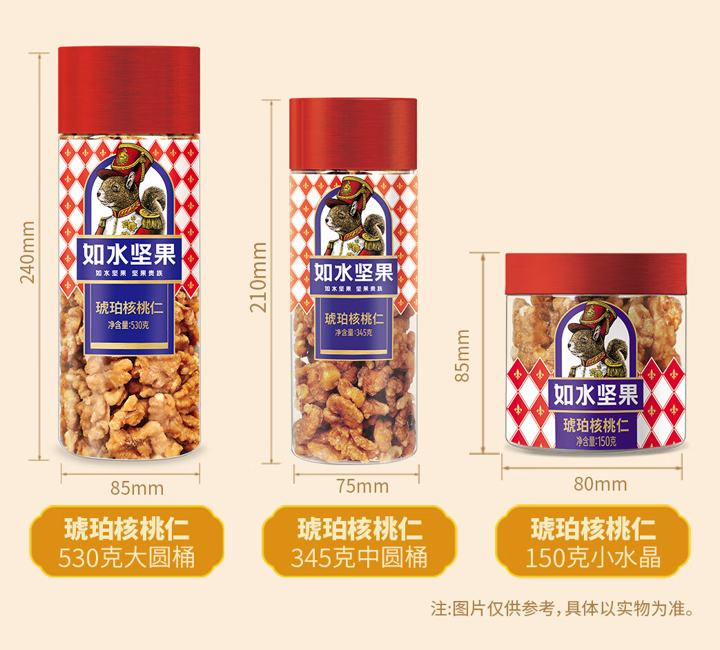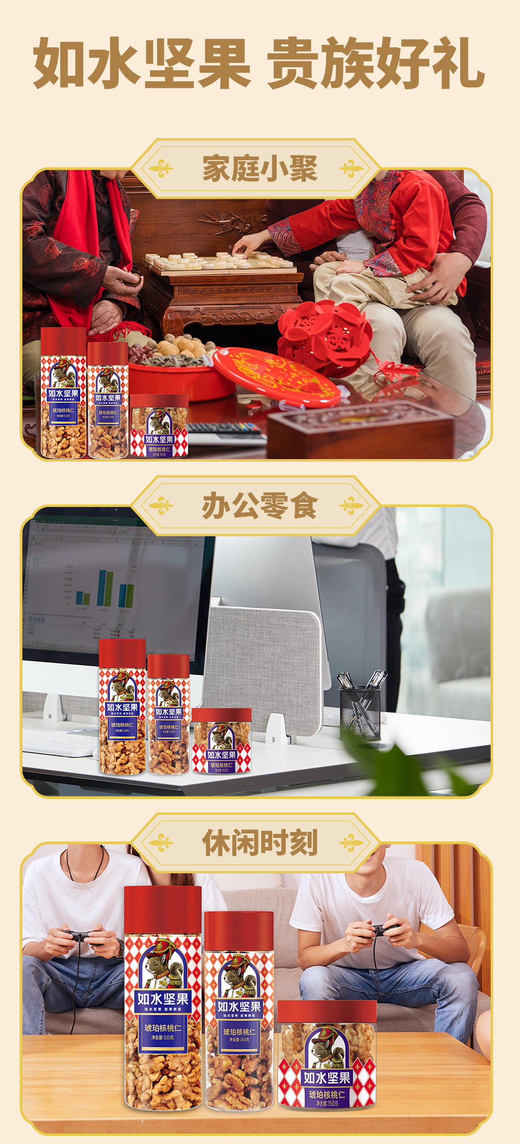 如水 琥珀核桃仁150g/罐 每日烘焙干果核桃特产休闲零食 经典小罐装