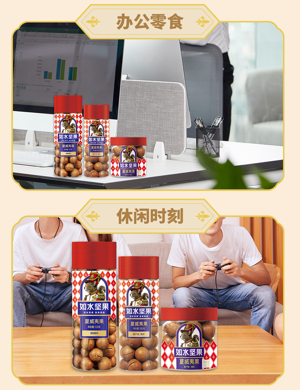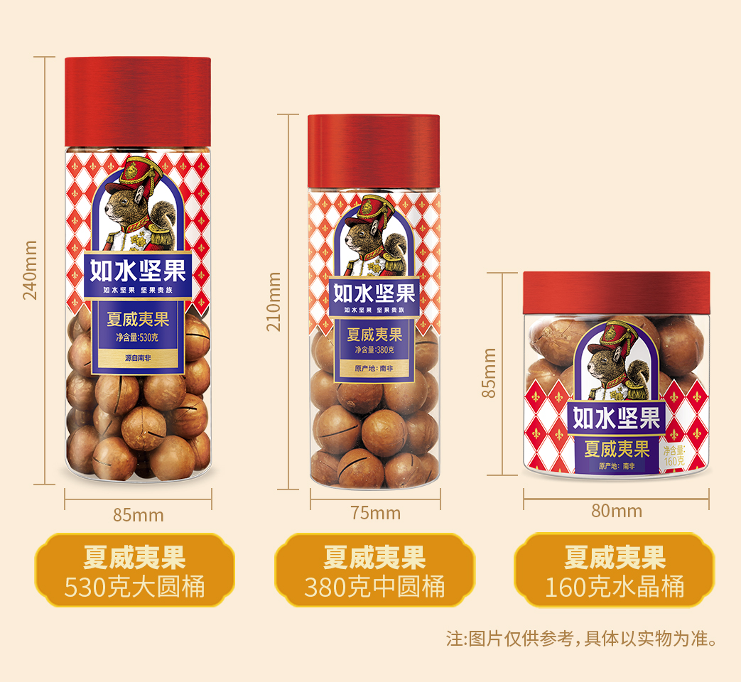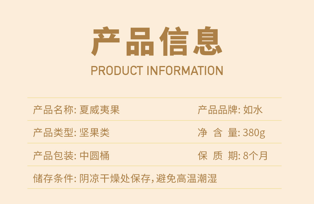 如水 夏威夷果380g/桶 原香烘焙大果仁 健康休闲零食干果
