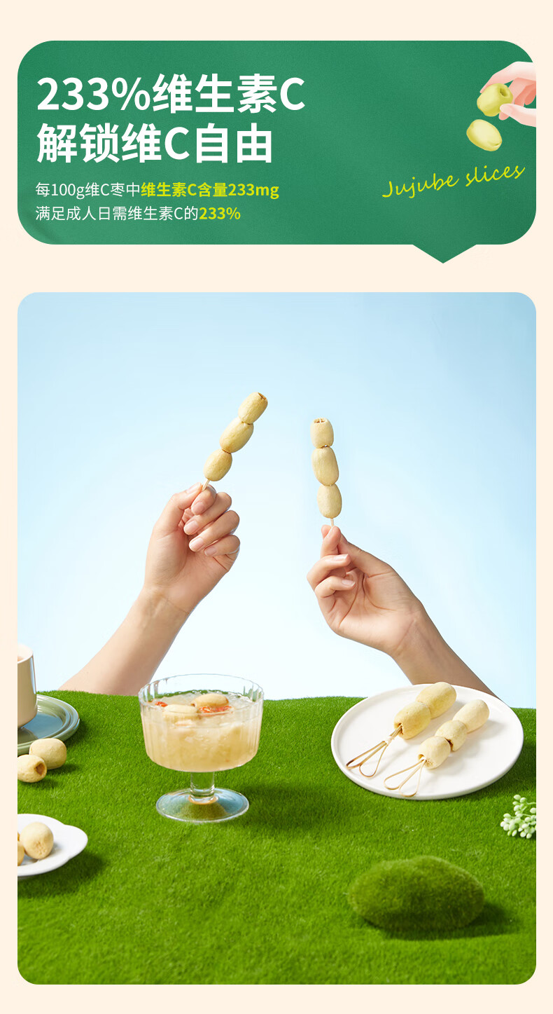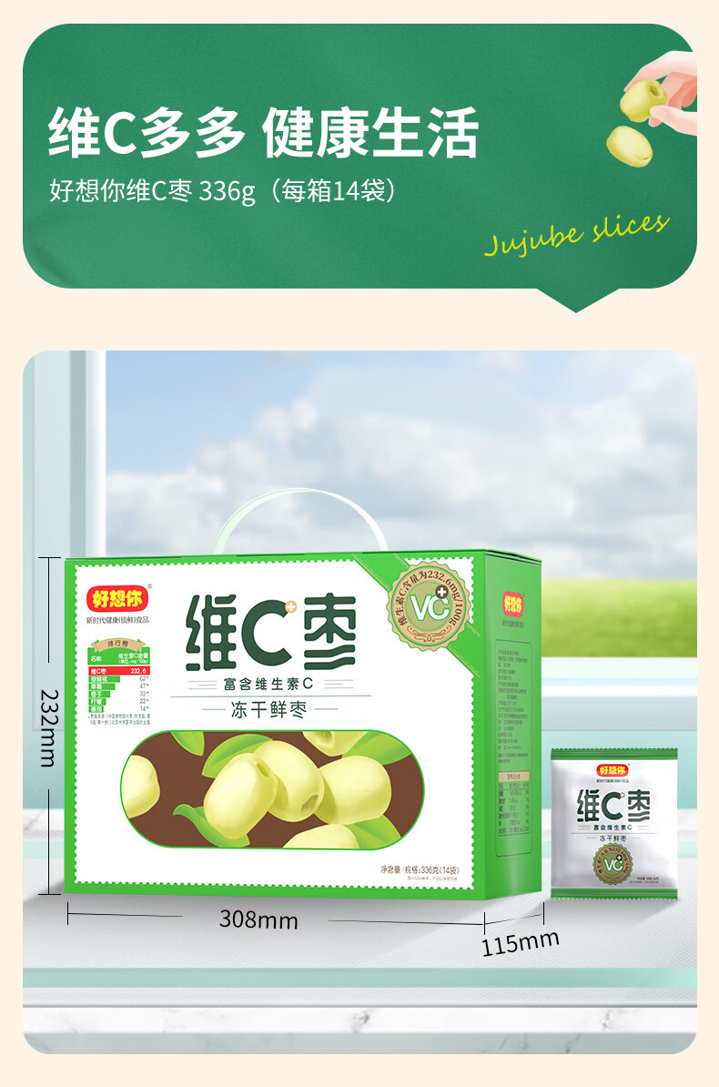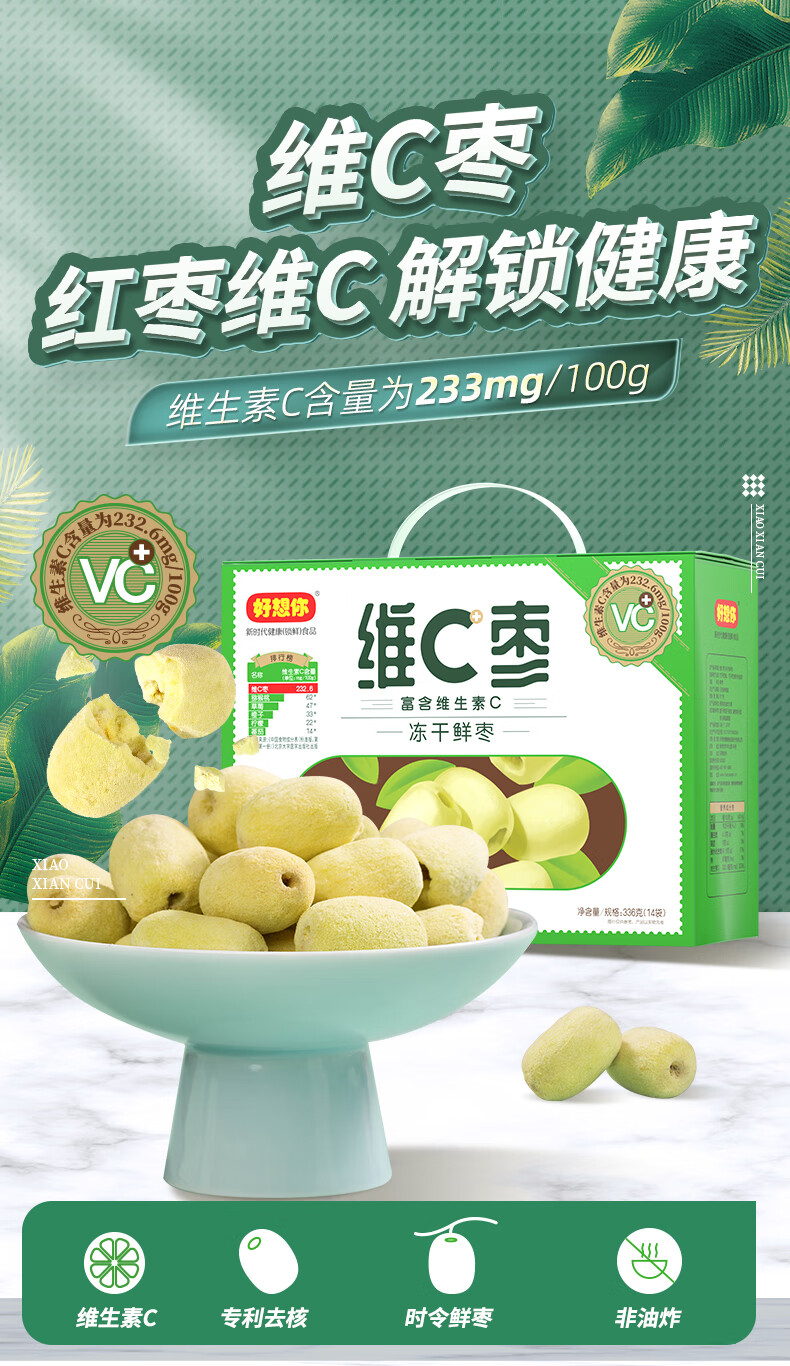 好想你冻干维c枣新疆特产免洗去皮即食红枣零食 336g维C枣