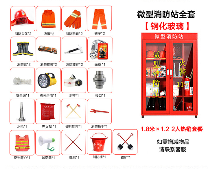 谋福9908微型消防站 消防物资柜 消防箱 放置柜展示柜应急柜1.8*1.2米全套消防柜