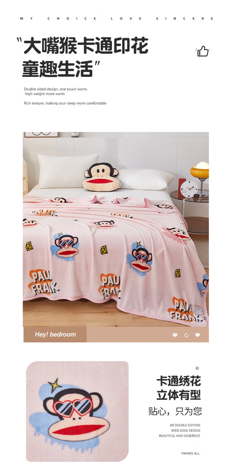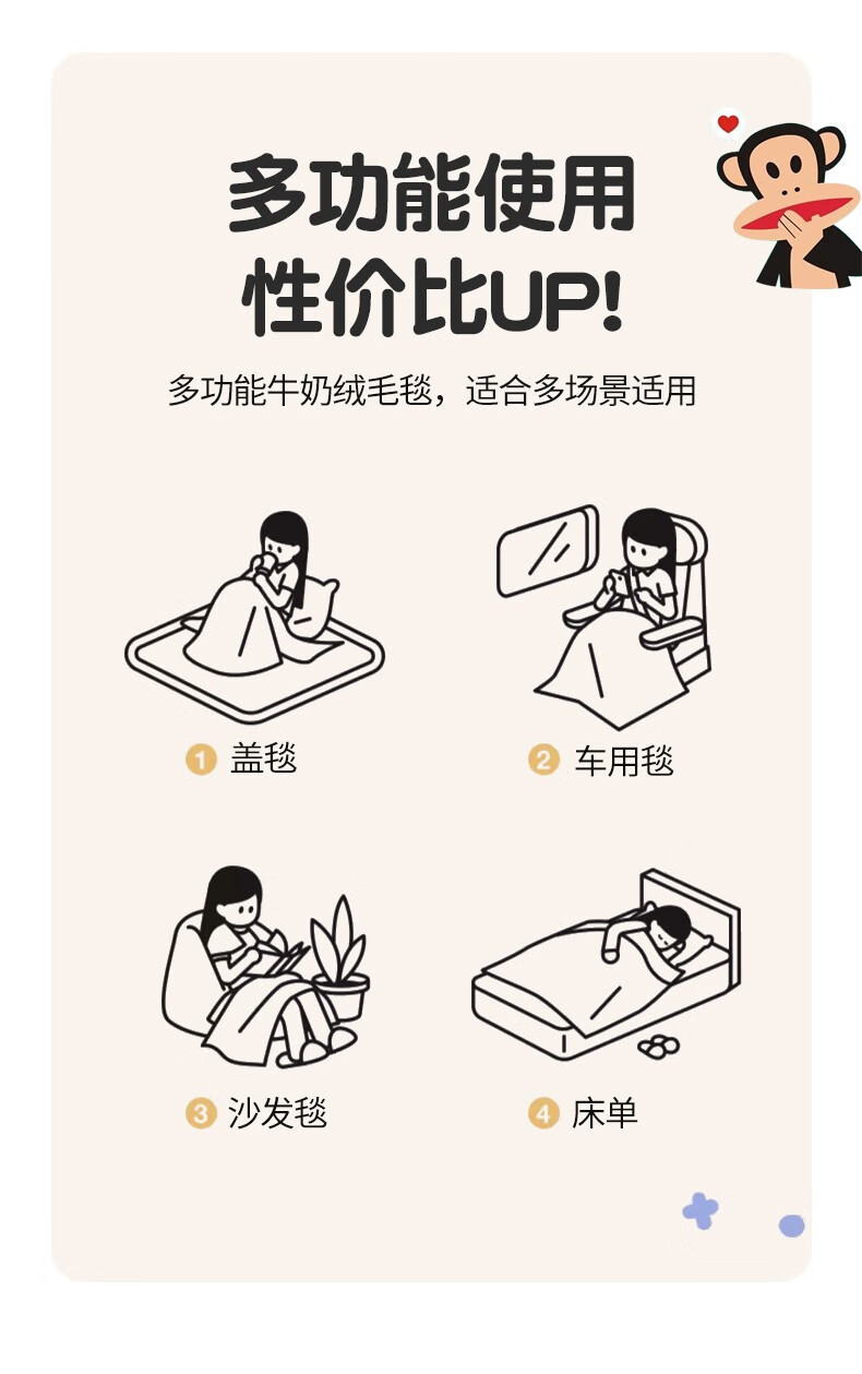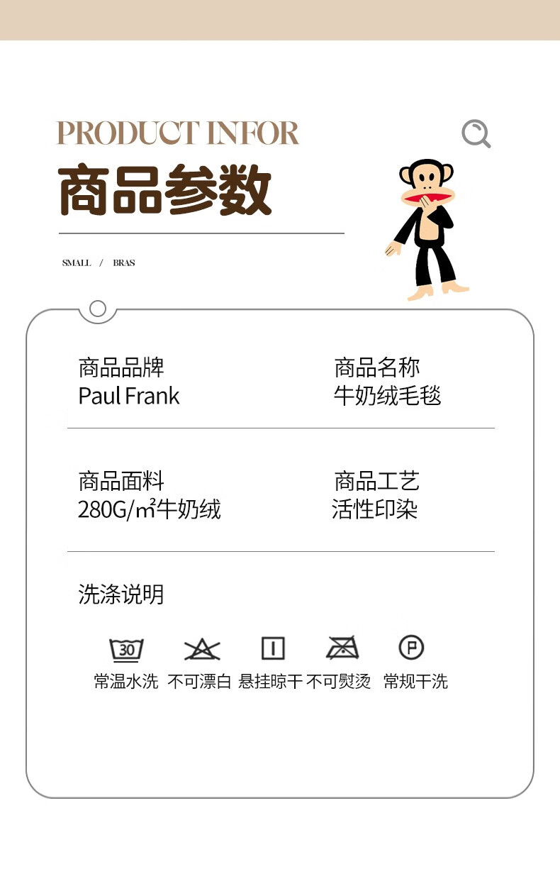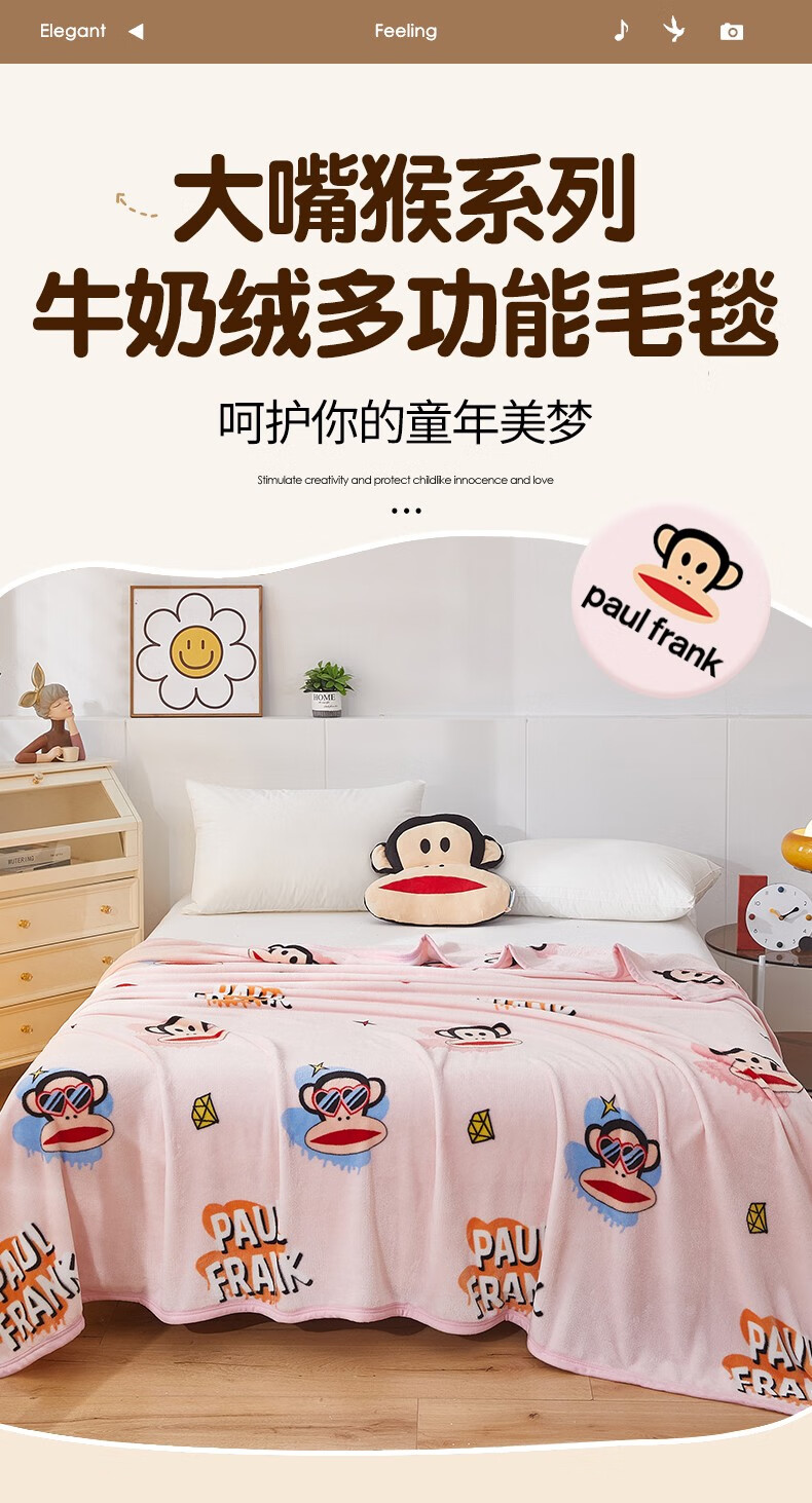 大嘴猴(PAUL FRANK)时尚亲肤毯150*200cm PF4607012