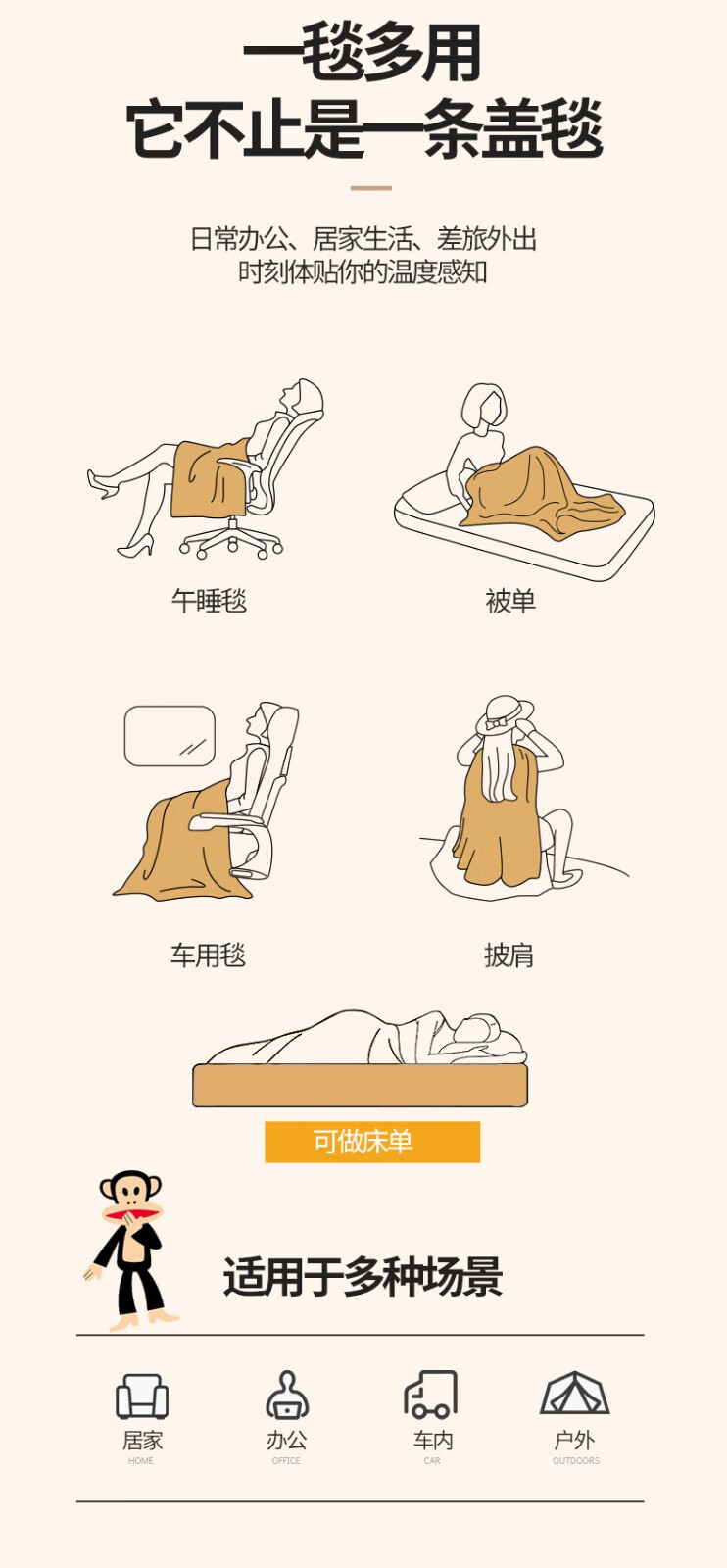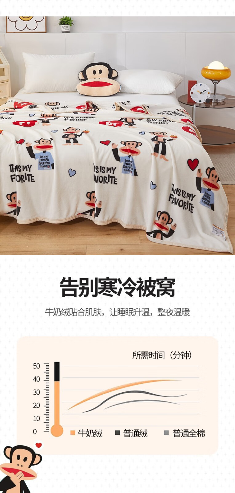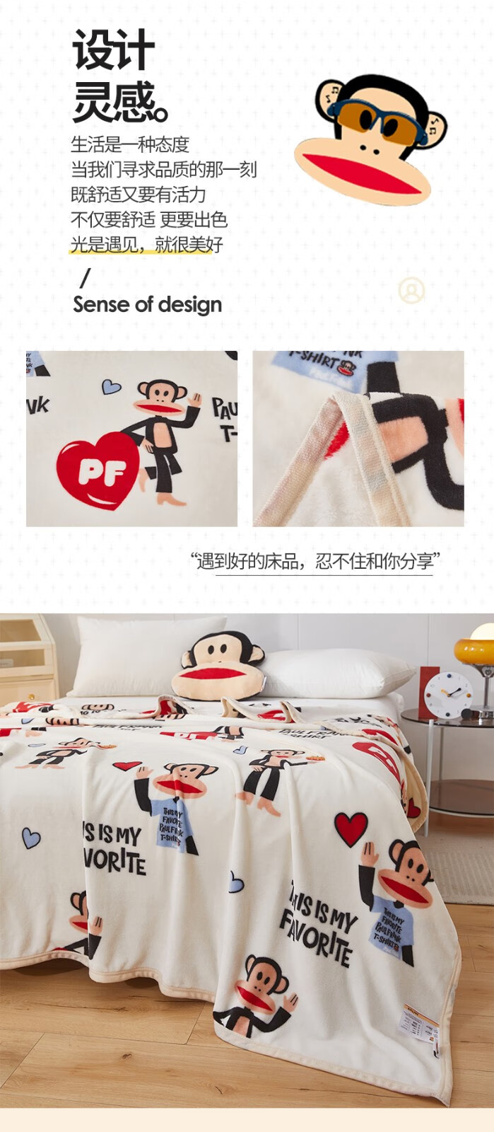 大嘴猴PF4609052 浪漫亲肤毯 (150*200cm) 白色