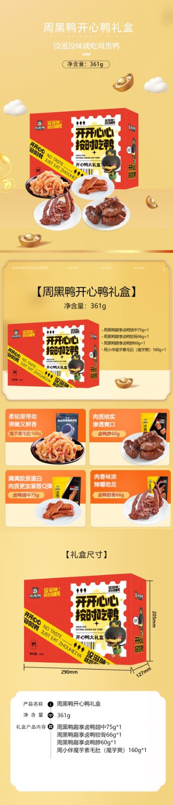 周黑鸭(ZHOUHEIYA)开心鸭礼盒大礼包H 开心鸭礼盒361g