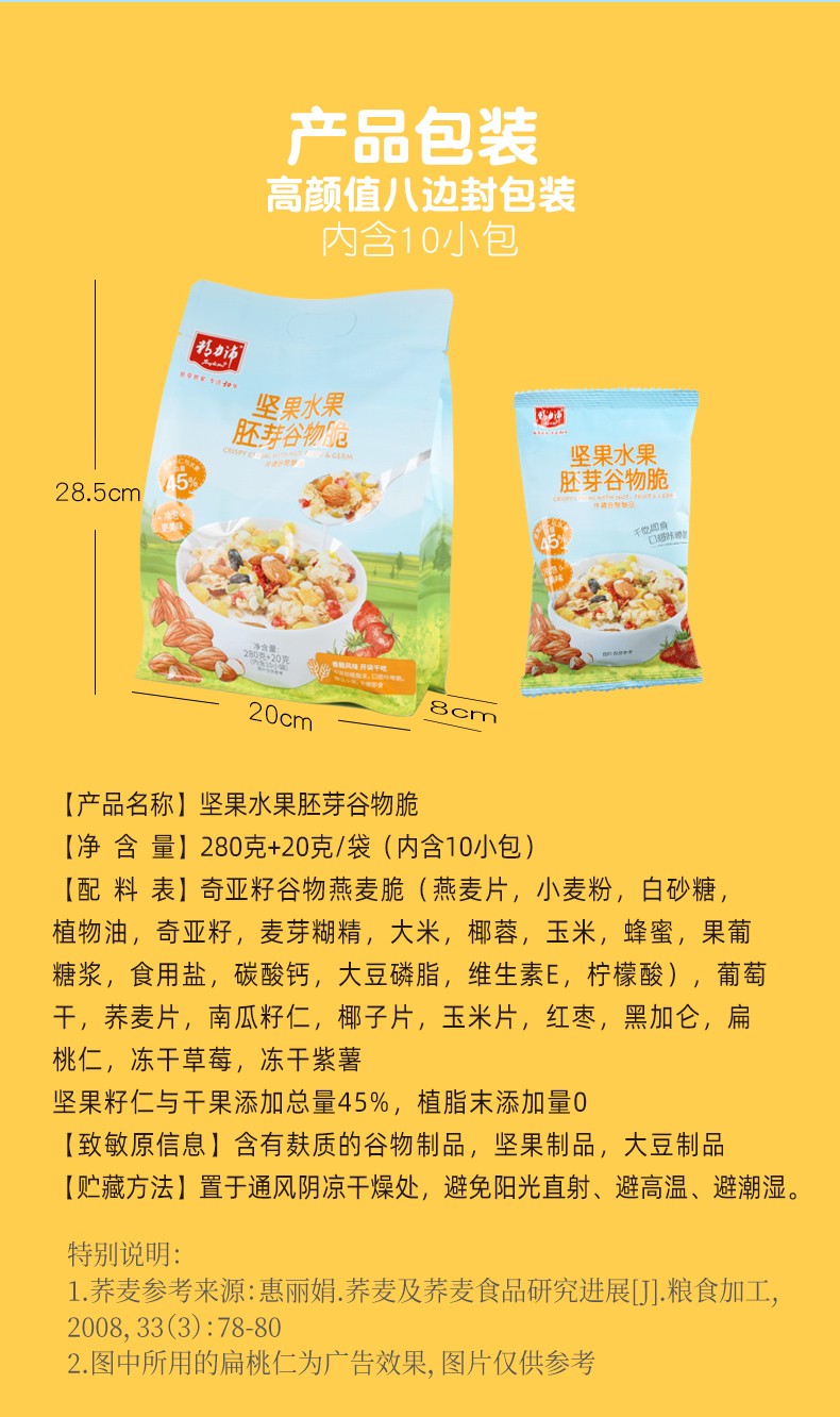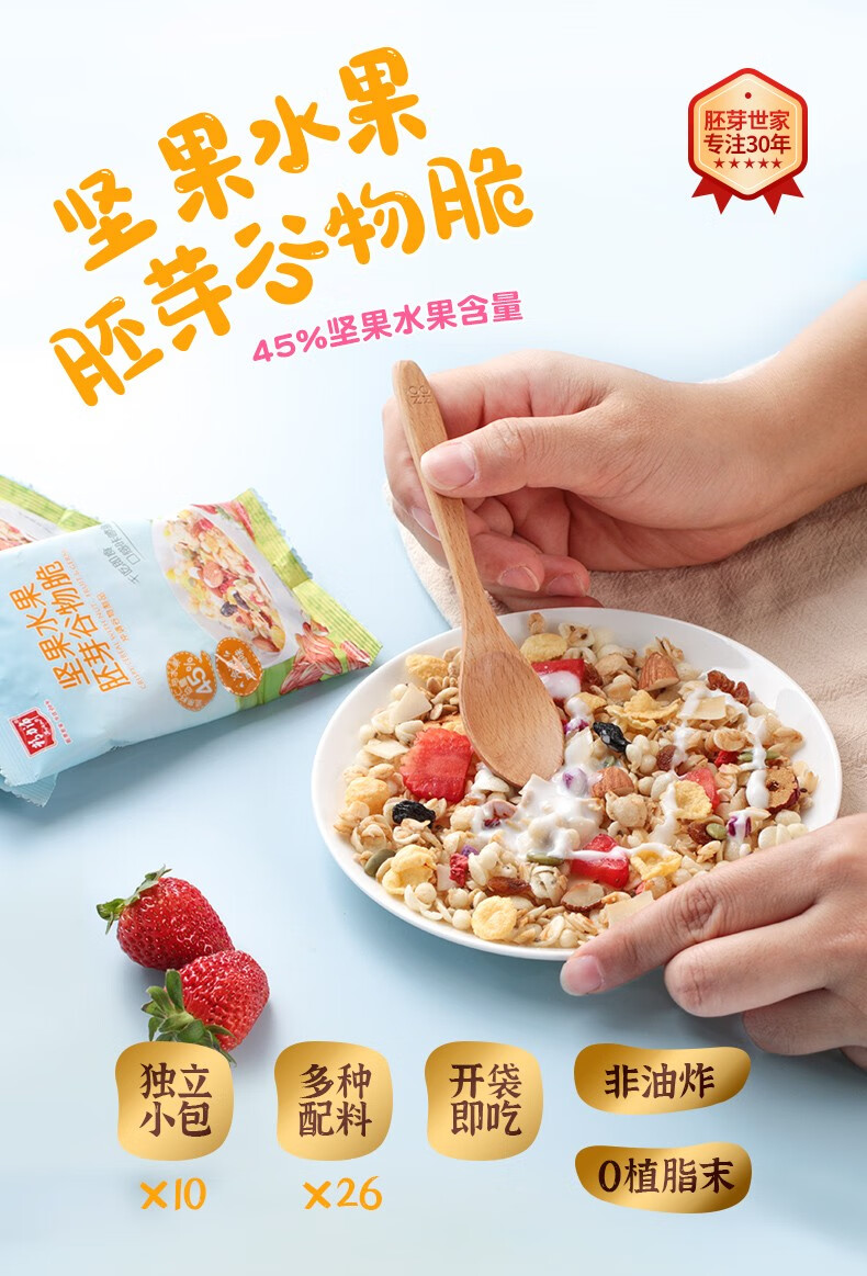 精力沛 坚果水果胚芽燕麦片干300g*10袋两大袋