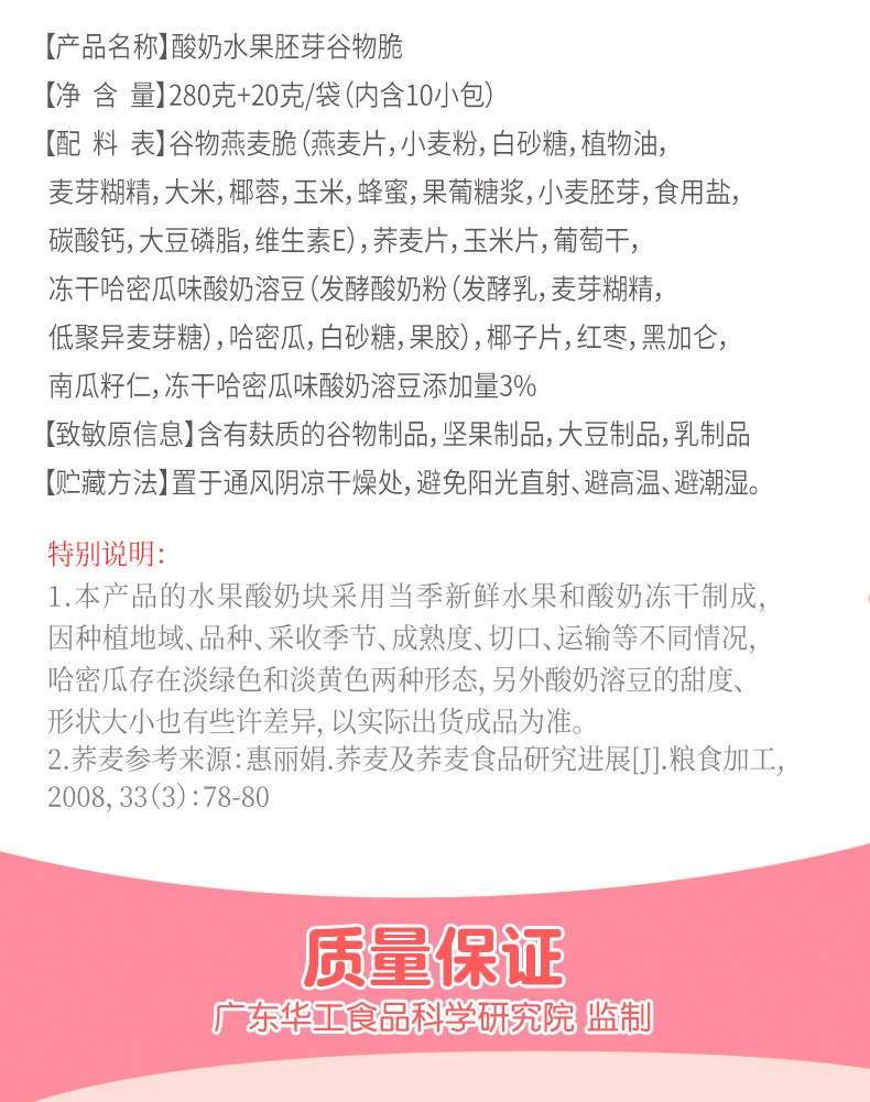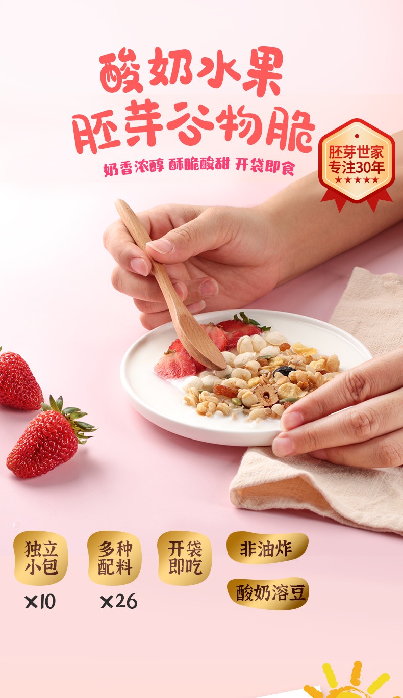 精力沛 酸奶水果胚芽燕麦片干300g*10袋两大袋