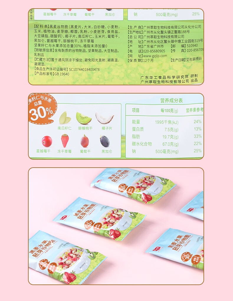 精力沛 黑麦水果燕胚芽谷物脆干300g*10袋两大袋