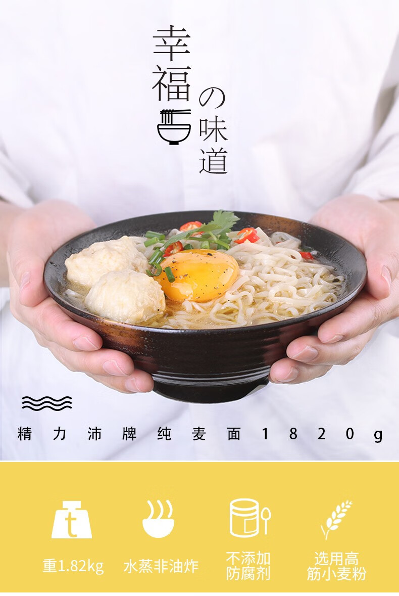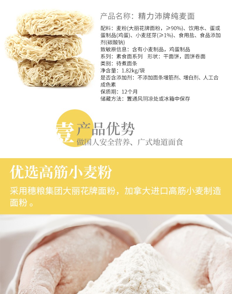 精力沛 非油炸高筋小麦粉鸡蛋面条 纯麦面 1.82kg