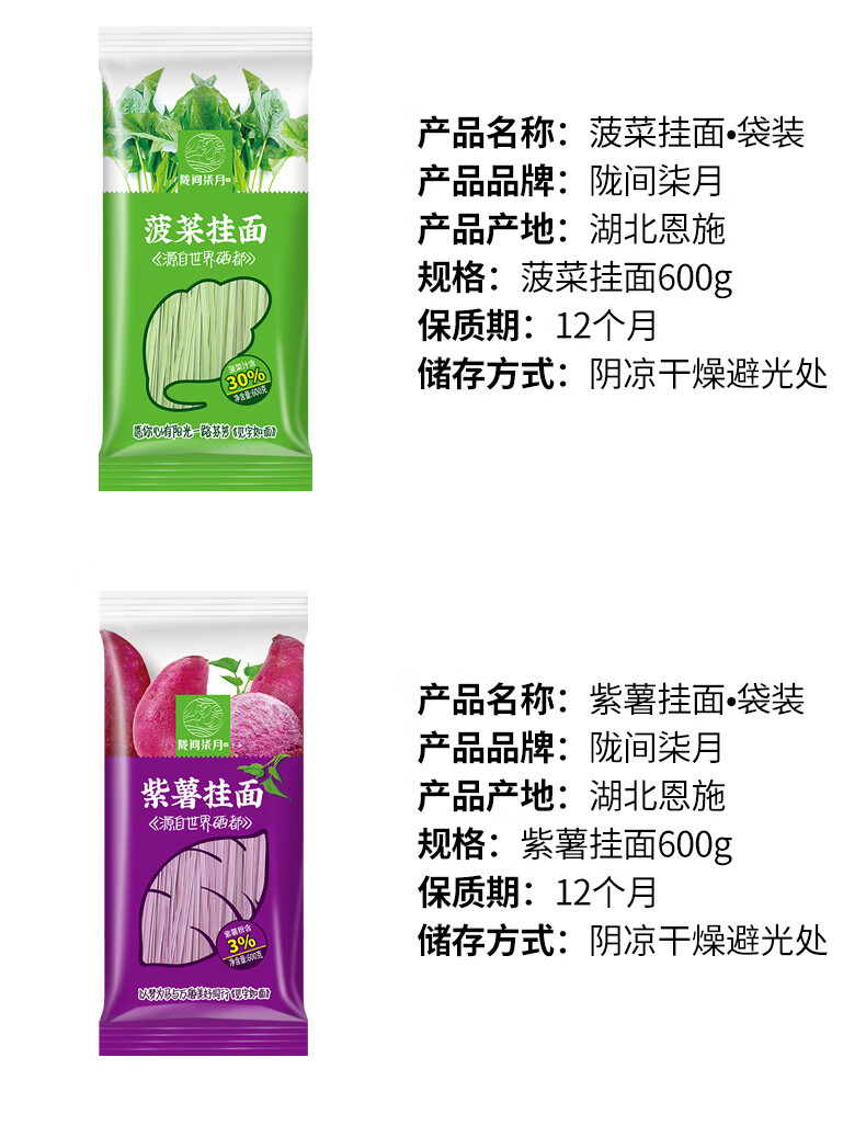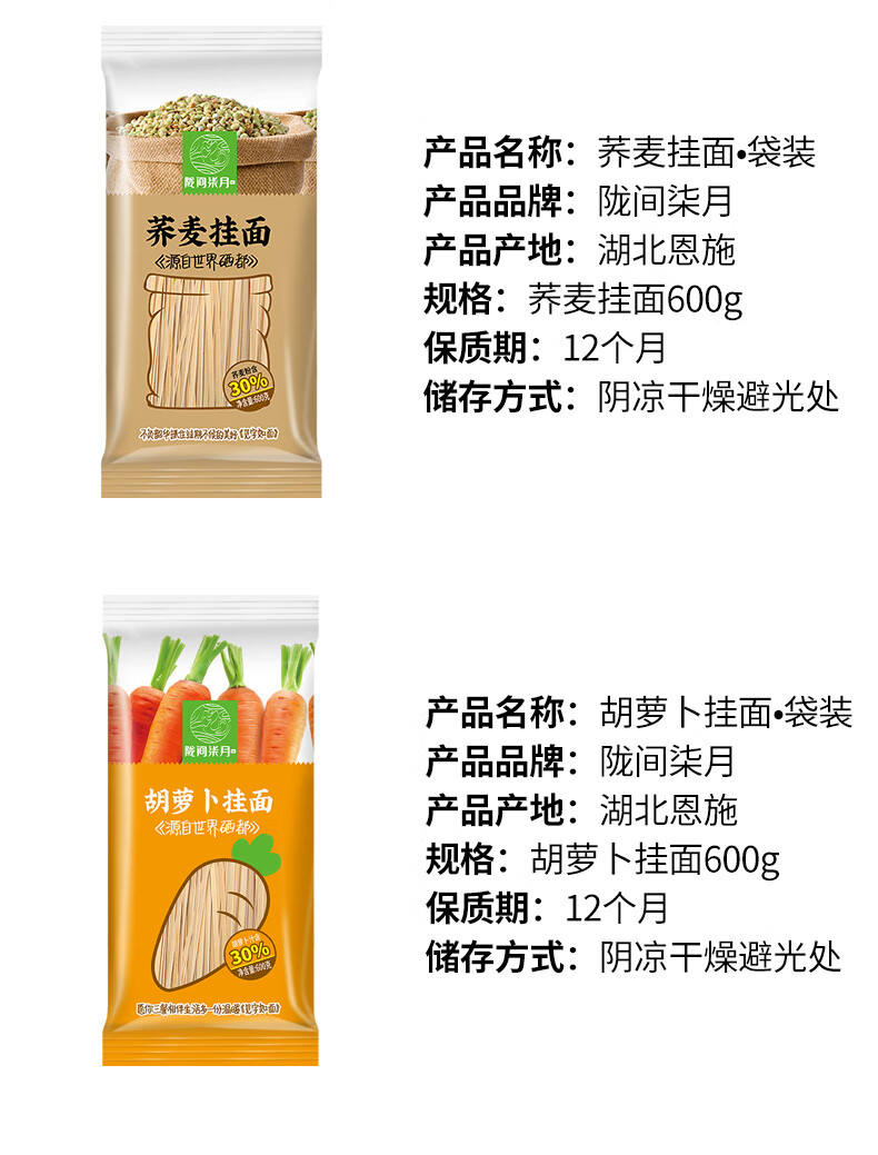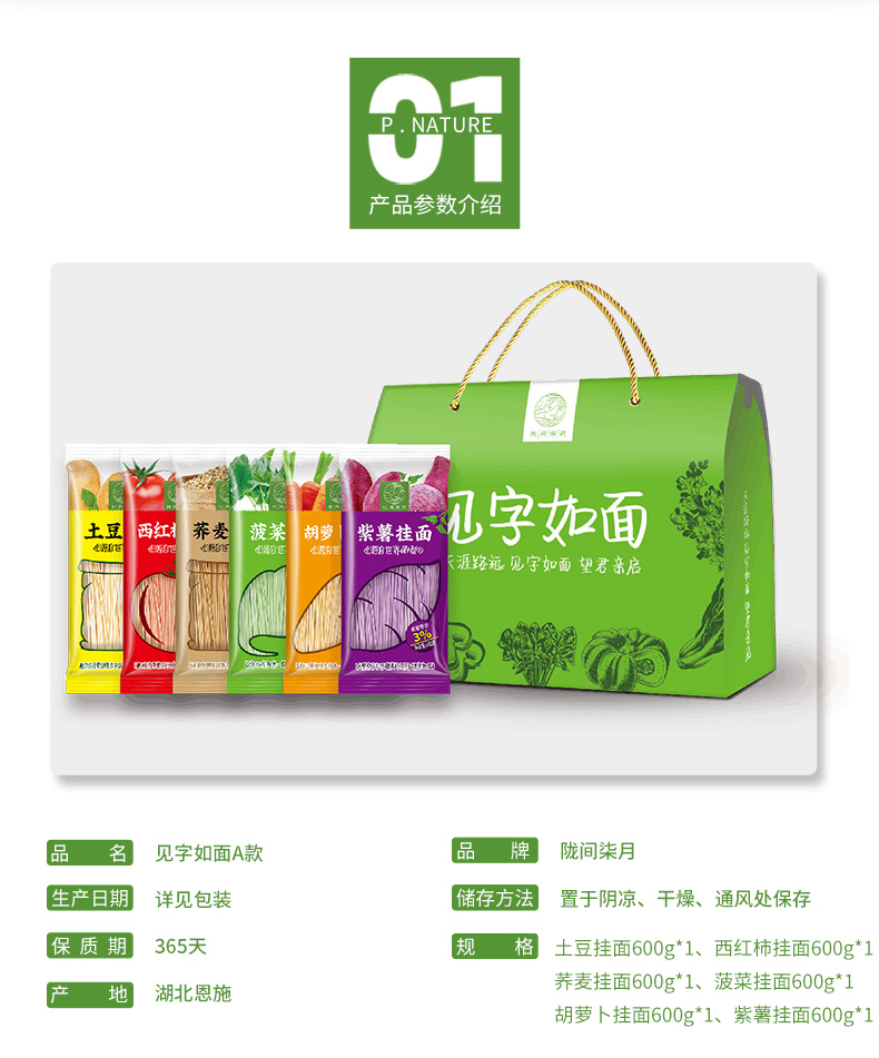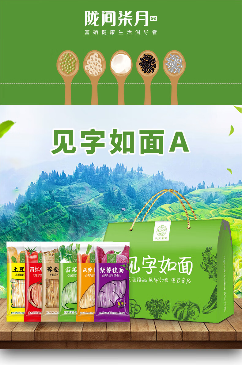陇间柒月见字如面礼盒果蔬挂面荞麦土豆紫薯菠菜胡萝卜挂面西红柿干面条3.6kg