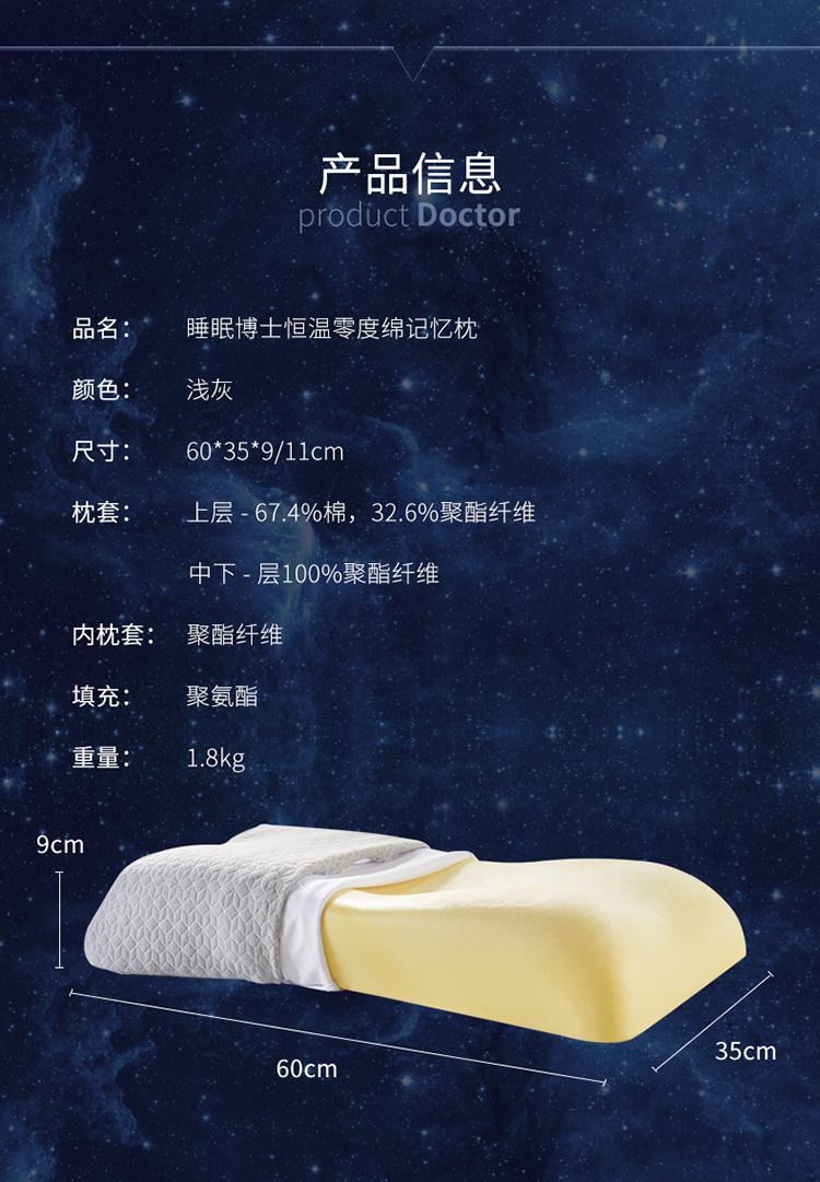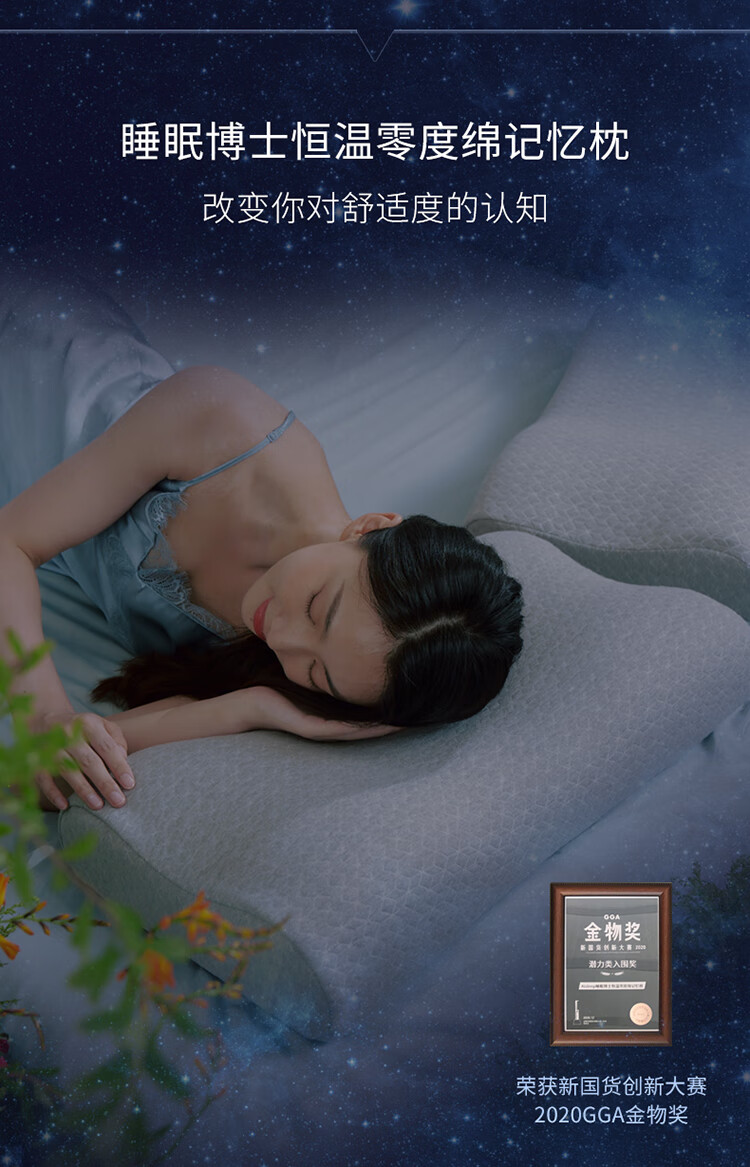 睡眠博士(AiSleep)枕头颈椎枕头 恒温爱护成人颈椎枕头零度绵记忆棉枕头枕芯睡眠偏低枕头睡眠枕 单位:个