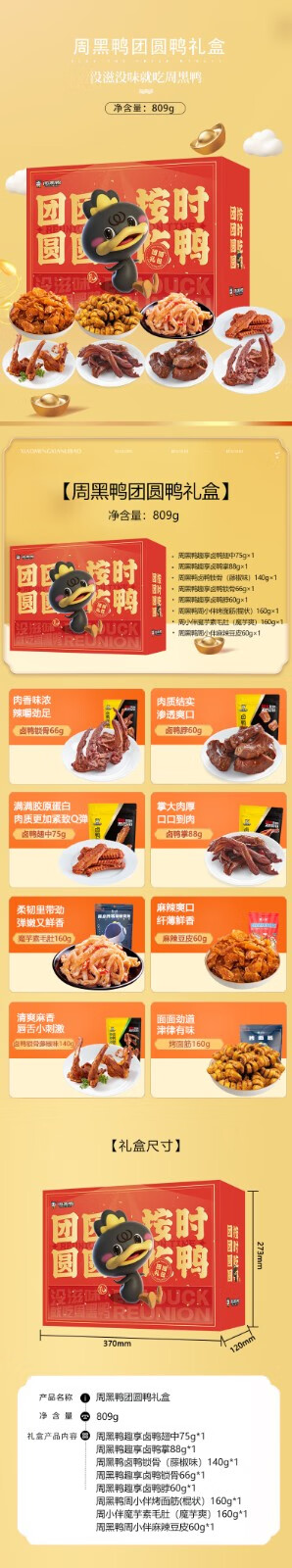 周黑鸭(ZHOUHEIYA)团圆鸭礼盒809g