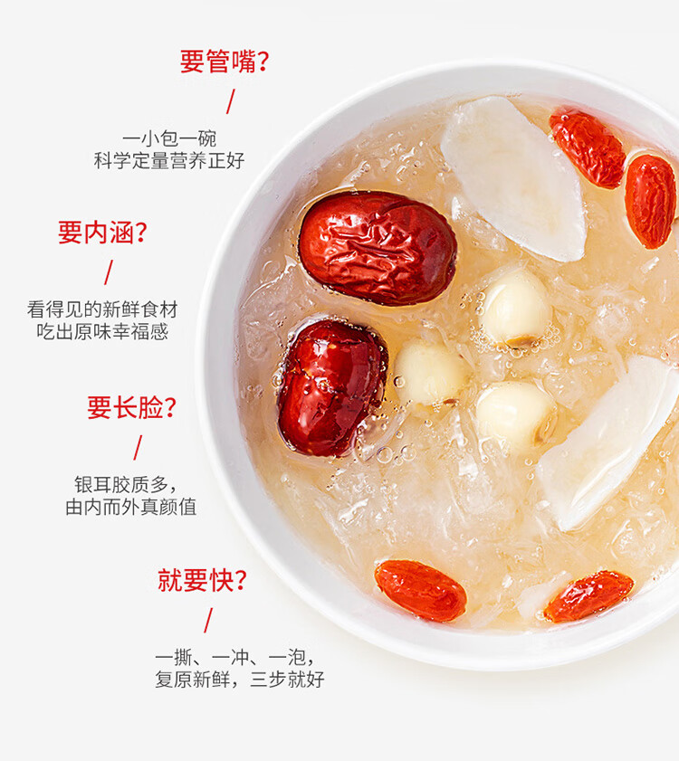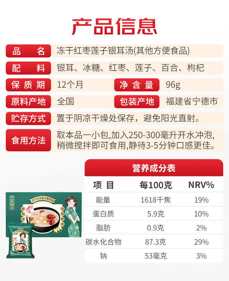 方家铺子 冻干红枣莲子银耳羹即食96g/盒(6袋)