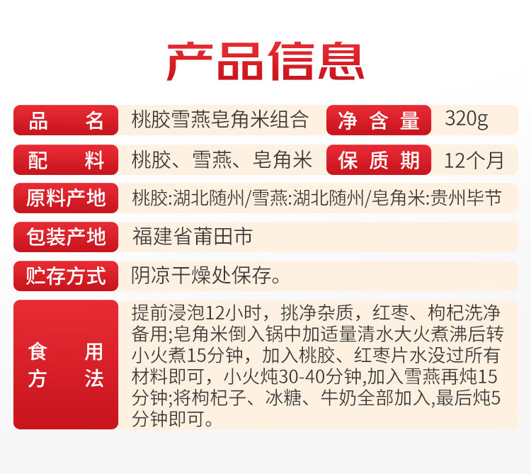 方家铺子 桃胶雪燕皂角米组合320g