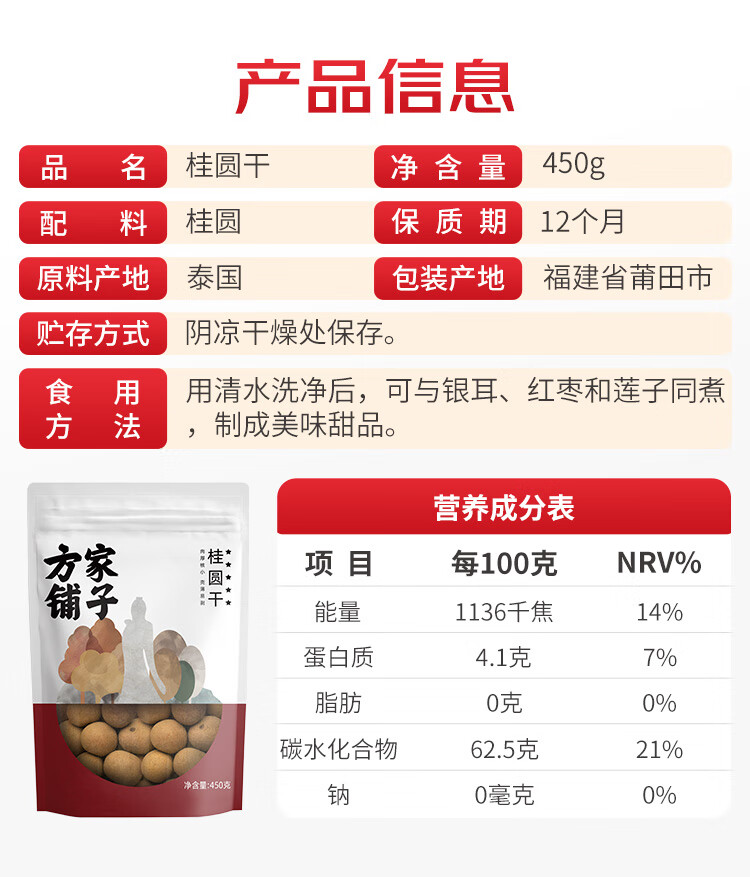 方家铺子 5A桂圆干450g*2袋