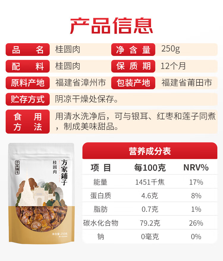 方家铺子 无核免剥 桂圆肉干250g*2袋
