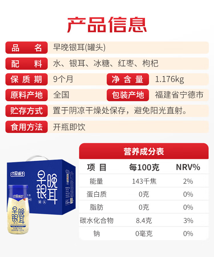 方家铺子 银耳羹196g×6瓶 即食鲜炖银耳红枣枸杞罐头