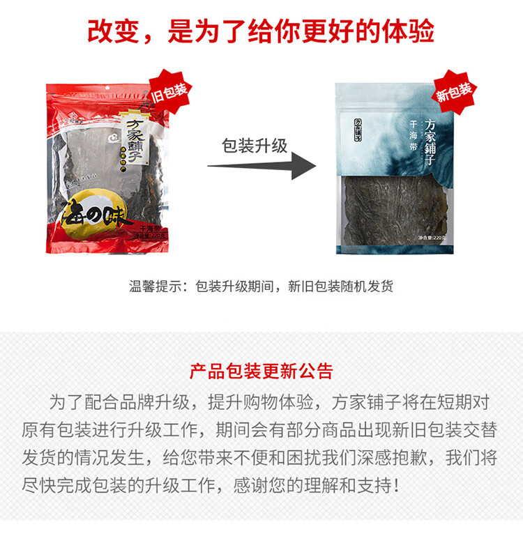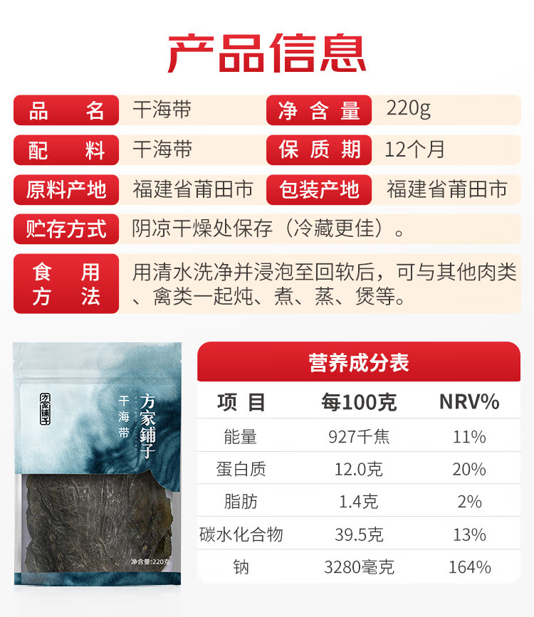 方家铺子 海带干220g*2袋 深海宽叶干海带