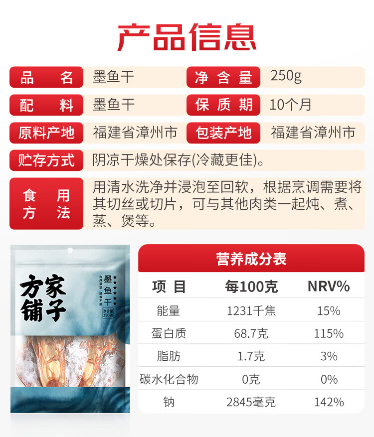 方家铺子 六星墨鱼干250g