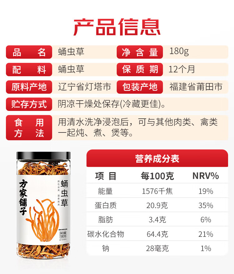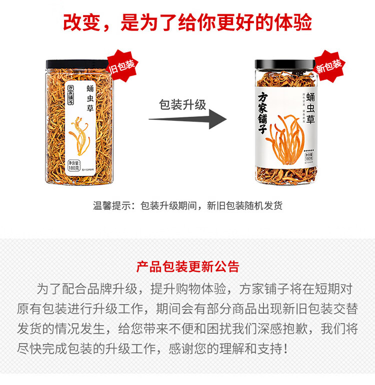 方家铺子 六星蛹虫草 虫草花180g