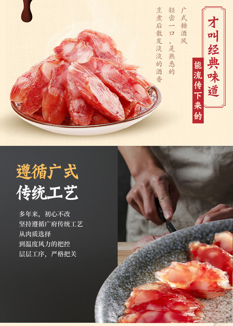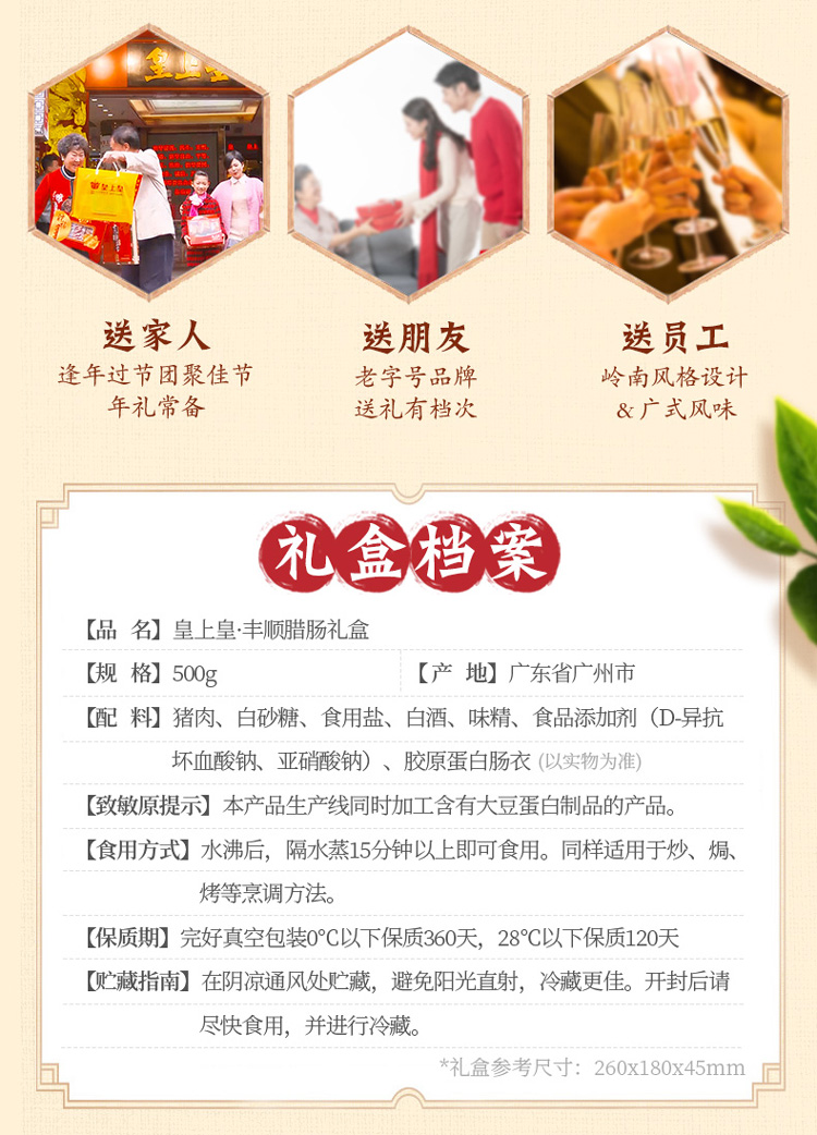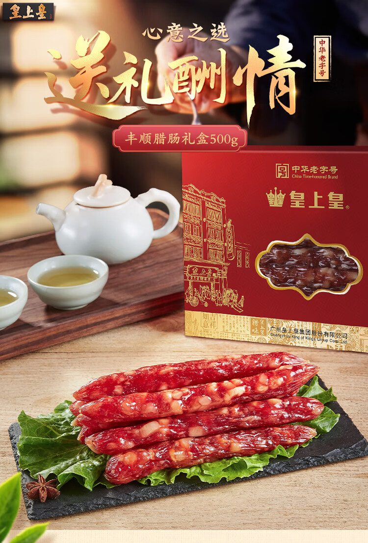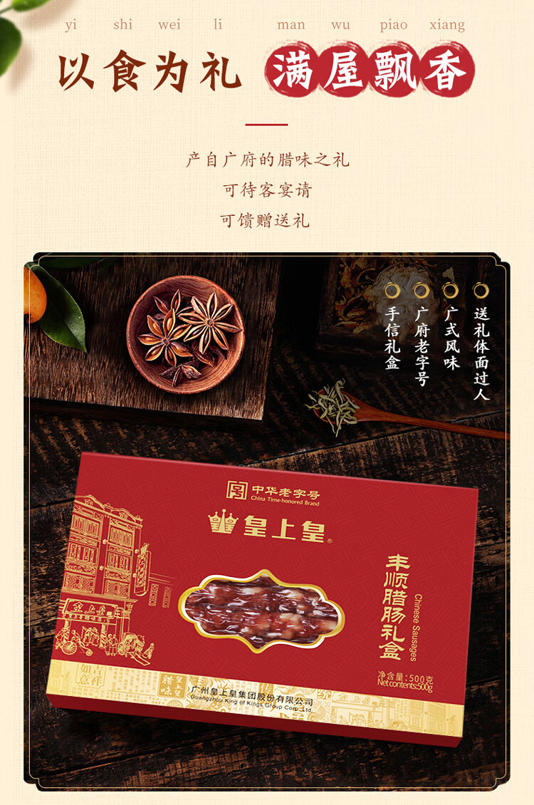 皇上皇 广东特产丰顺腊肠礼盒(6分瘦)500g中华老字号