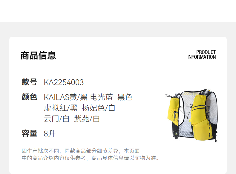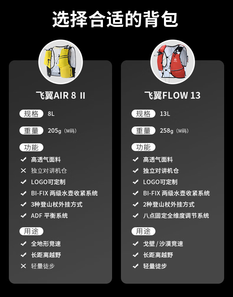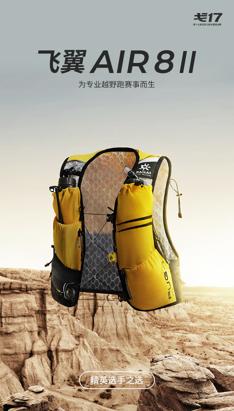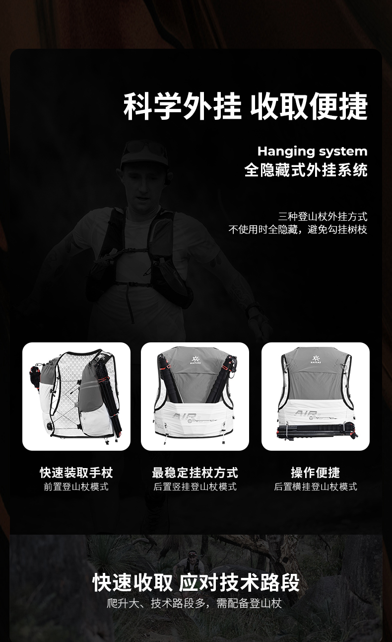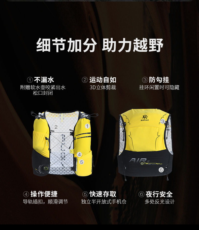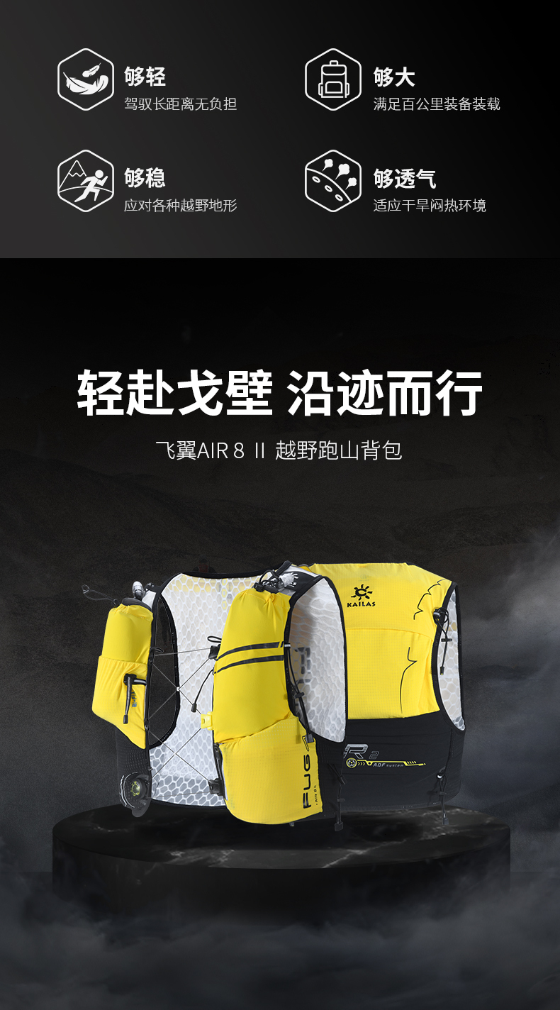 凯乐石专业跑山背包8升轻量透气耐磨户外越野包飞翼·AIR 8 II KA2254003 黑色(S-L码可选 下单备注)