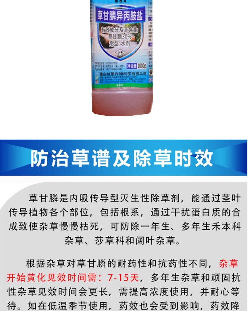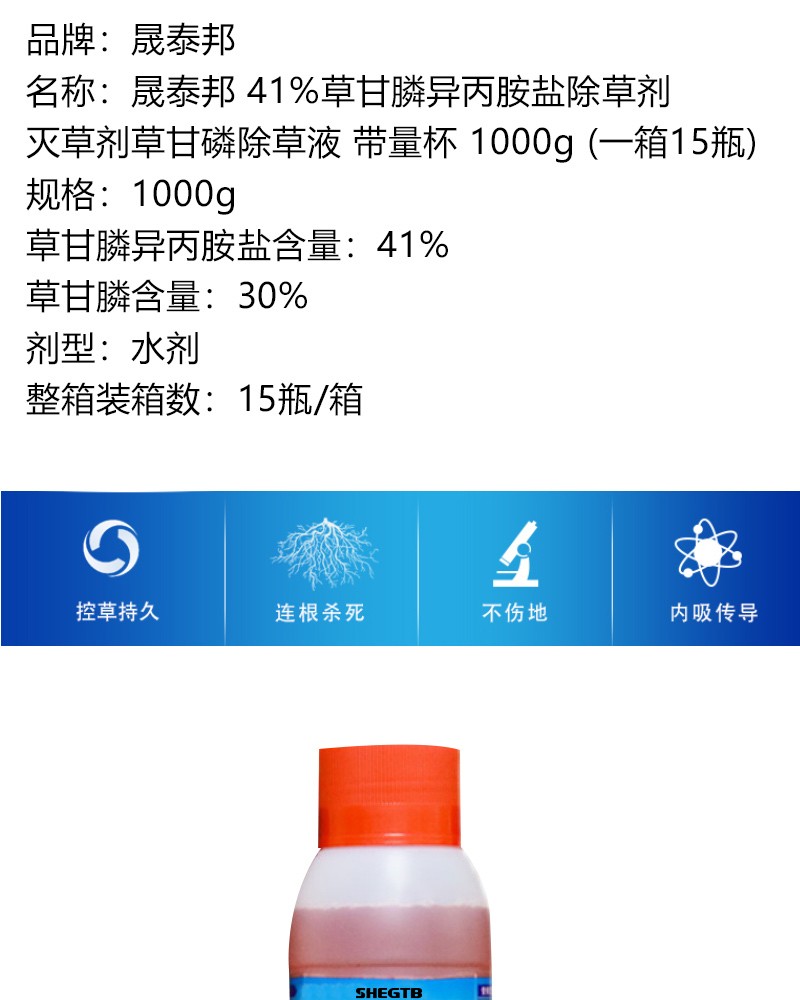 晟泰邦 41%草甘膦异丙胺盐除草剂灭草剂草甘磷除草液 带量杯 1000g (一箱15瓶) 单位:箱