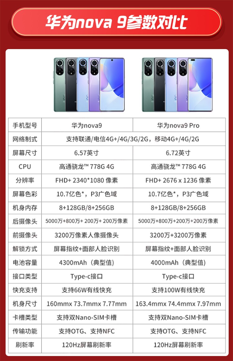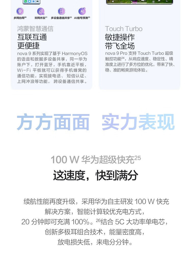 HUAWEI nova 9 Pro 4G全网通双3200万前置Vlog镜头100W超级快充 【8+256GB】黑色 标准版