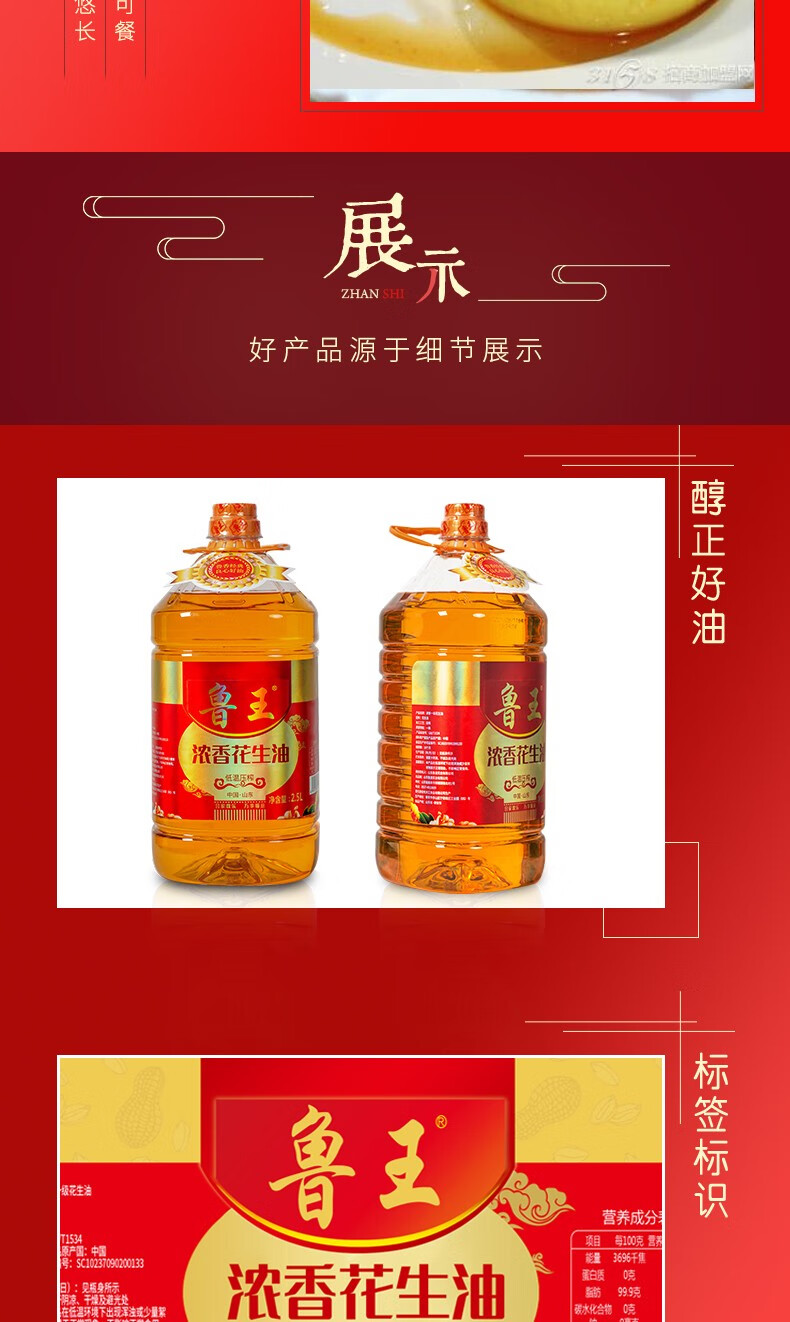 鲁王 压榨一级 浓香花生油 2.5L