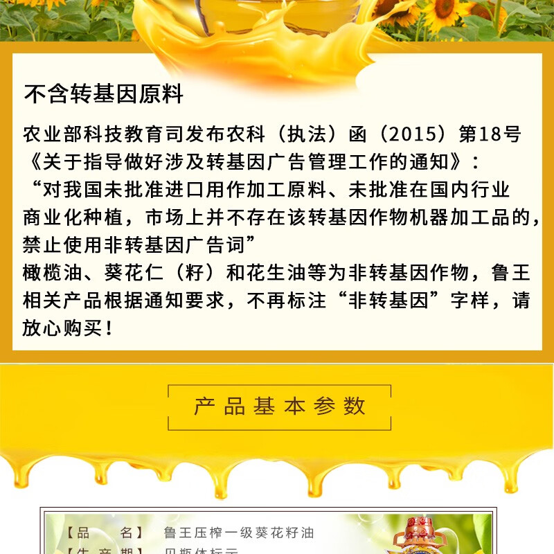 鲁王 葵花籽油5L 压榨一级植物油食用油