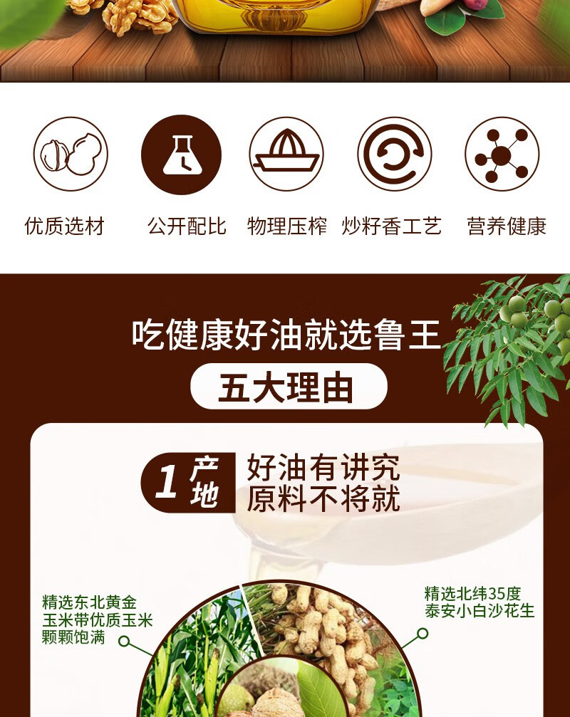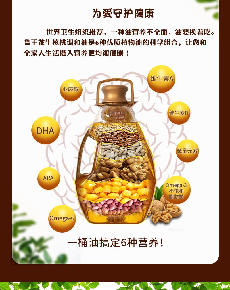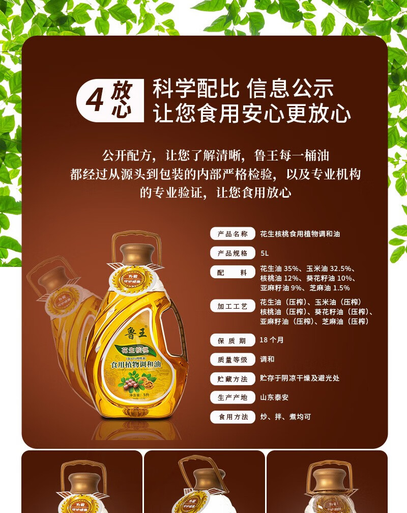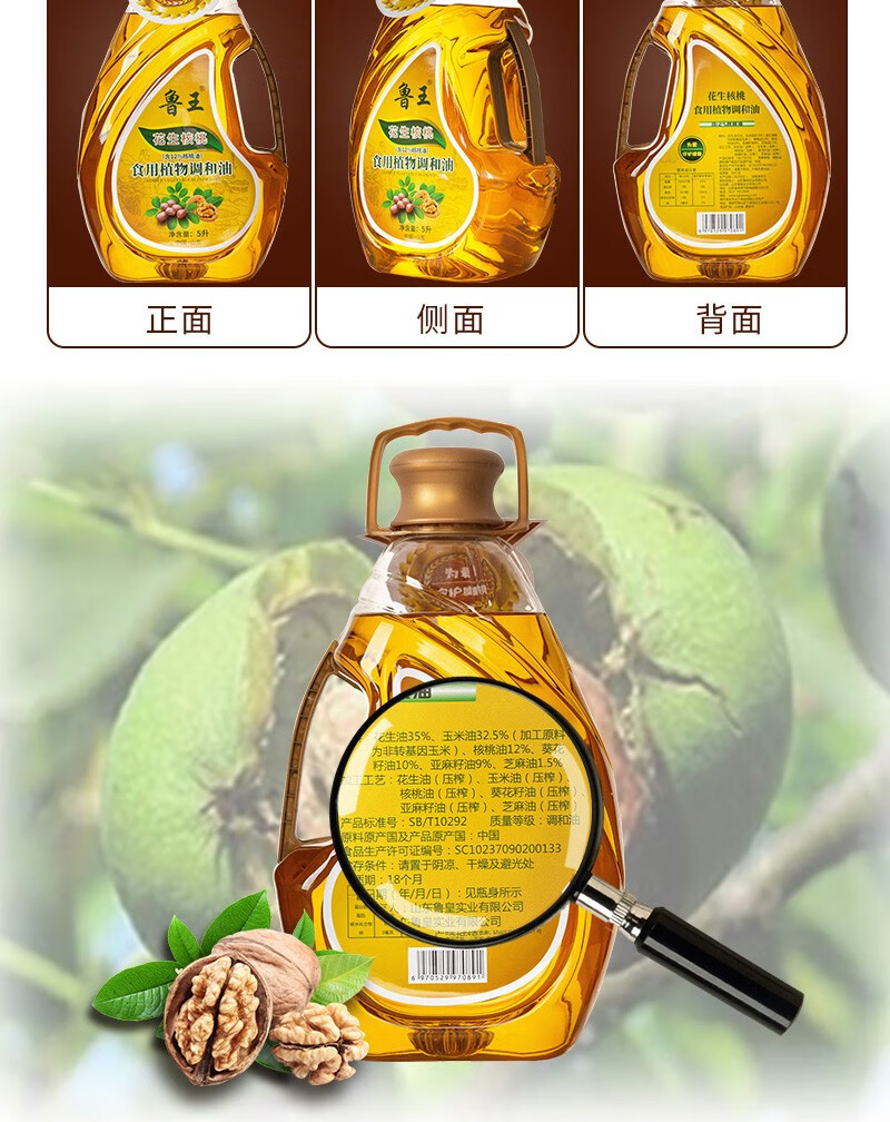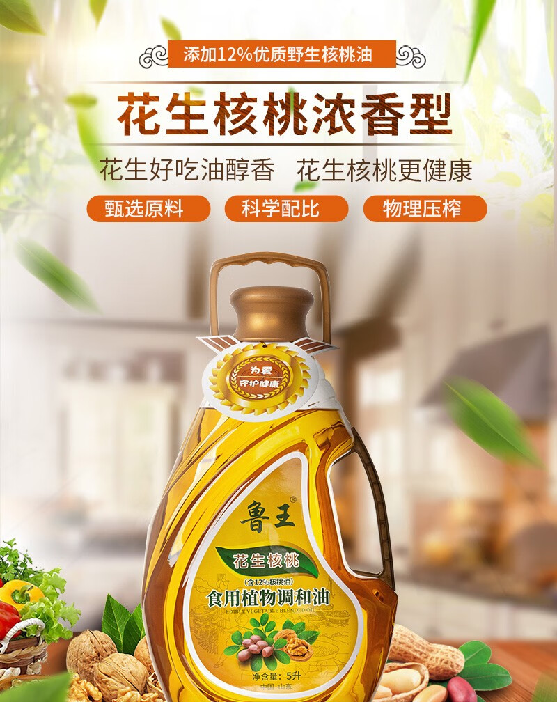 鲁王 花生核桃食用植物调和油 5L (含12%核桃油)