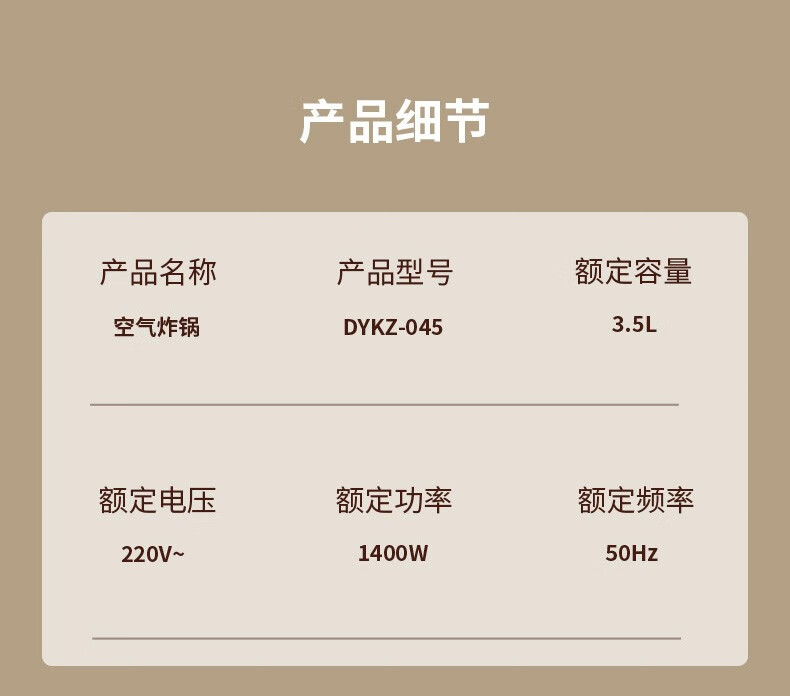大宇 无油炸锅电炸锅大容量多功能空气炸锅DYKZ-045 3.5L