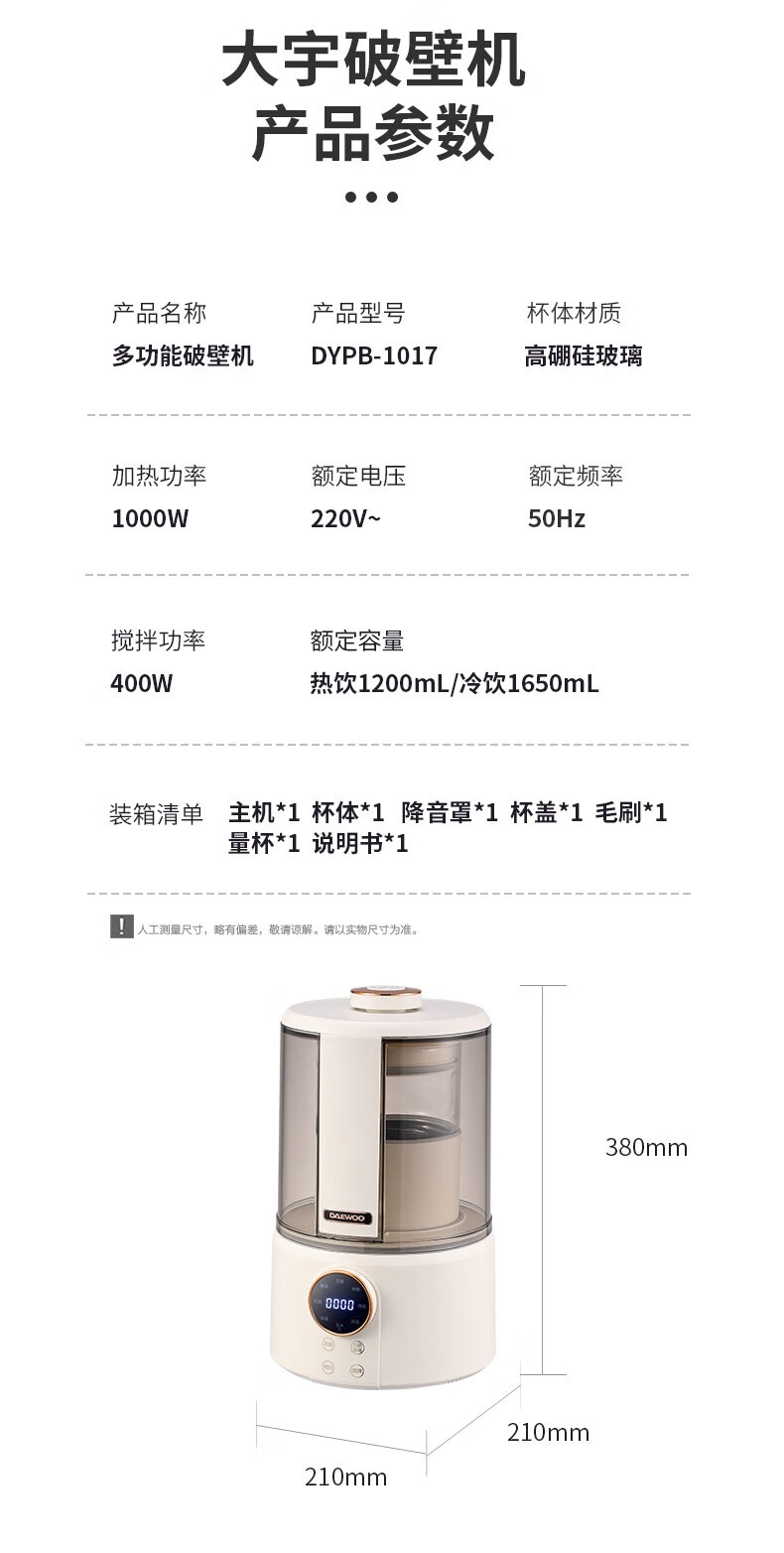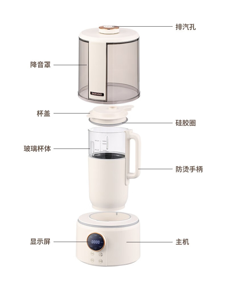 大宇 豆浆料理机家用营养辅食多功能破壁机DYPB-1017 流苏白