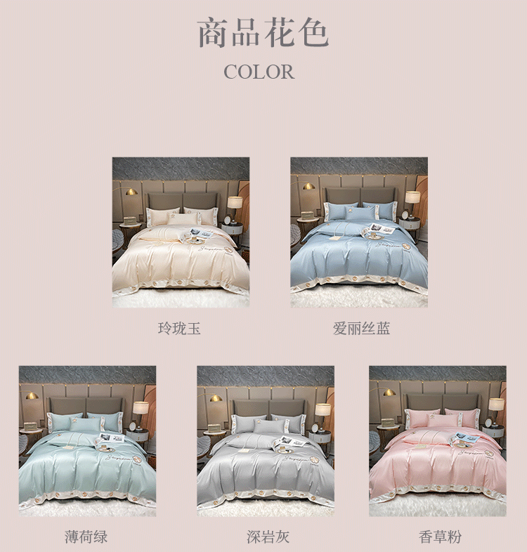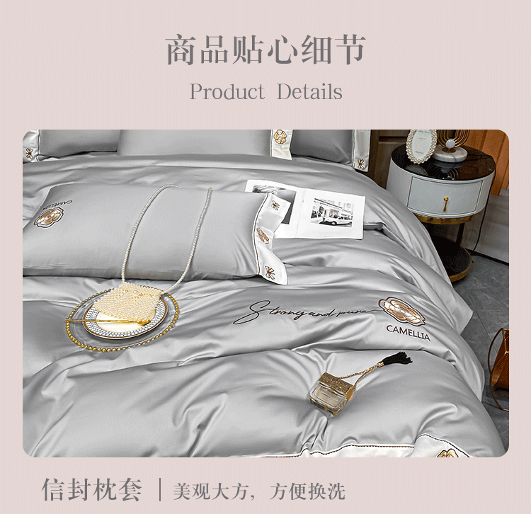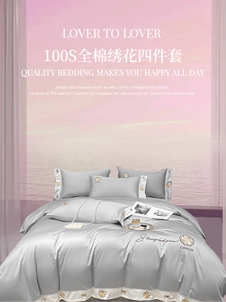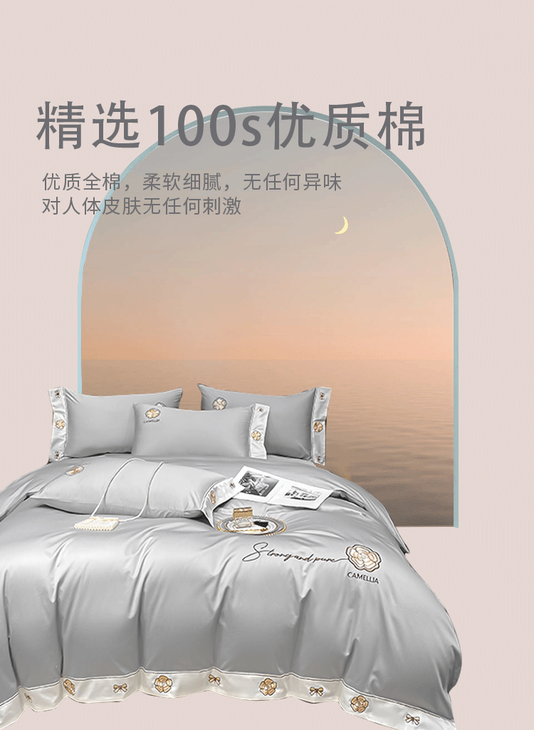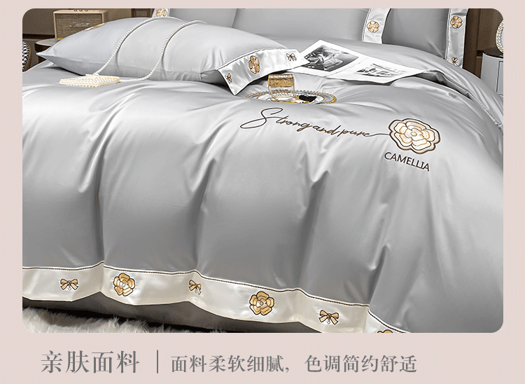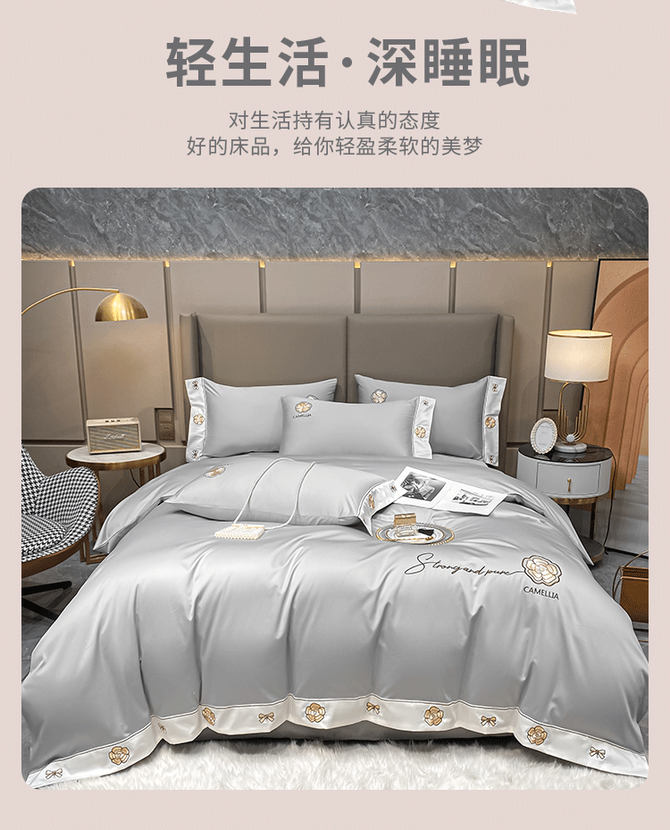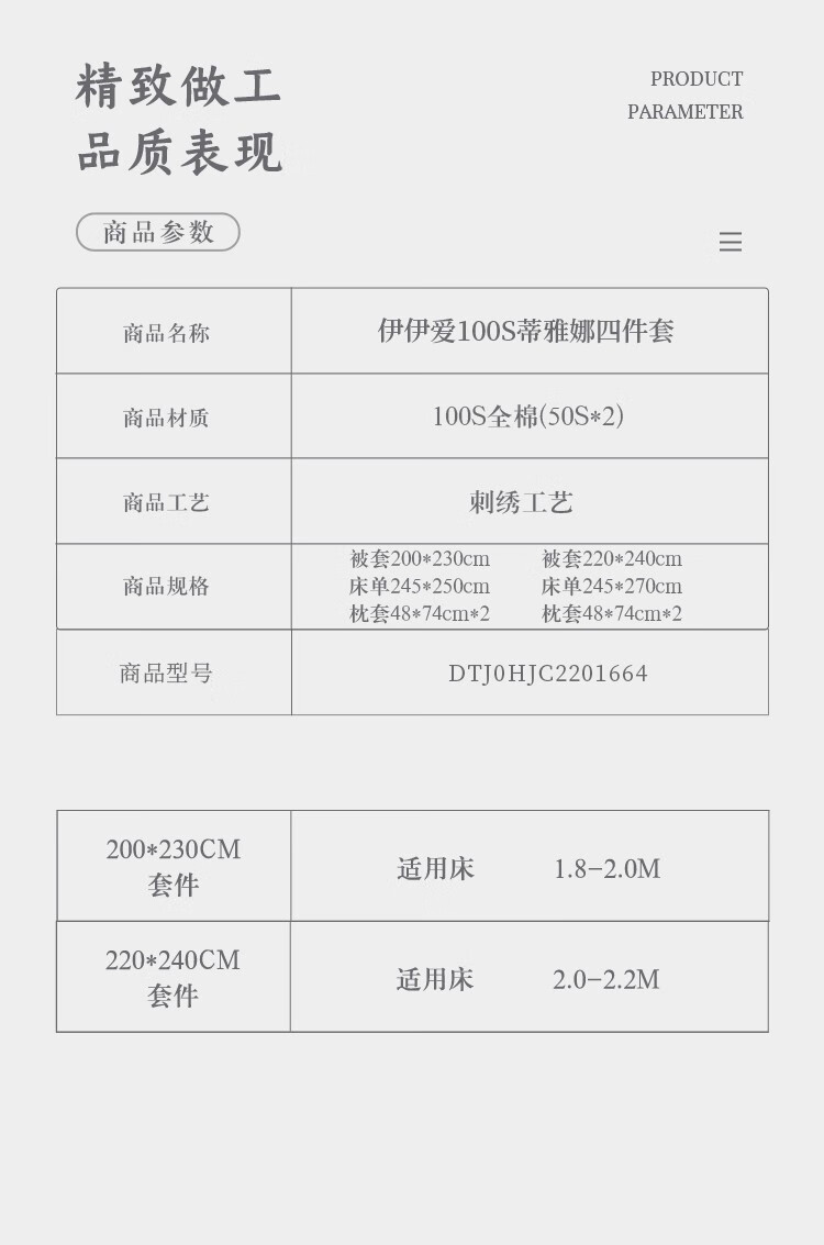 伊伊爱 蒂雅娜绣花纯棉四件套深岩灰 200*230cm/DTJ0HJC2201664