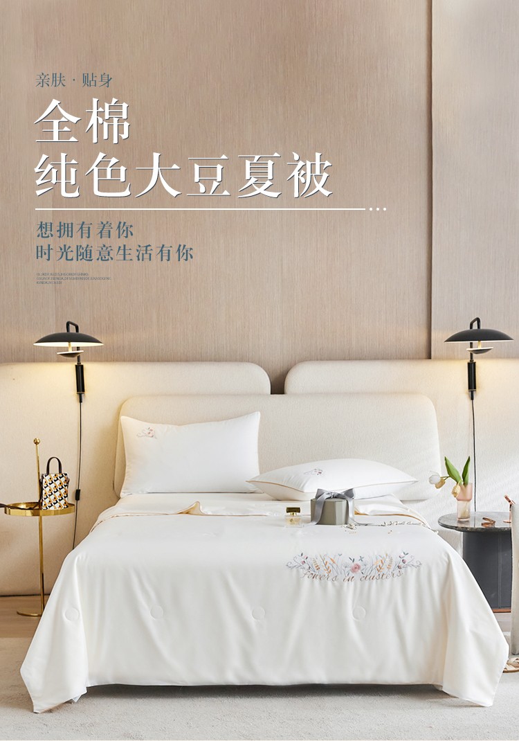 伊伊爱 全棉纯色百花齐放系列大豆夏凉被 百花齐放-白 200*230cm/BZ0TDC2201048