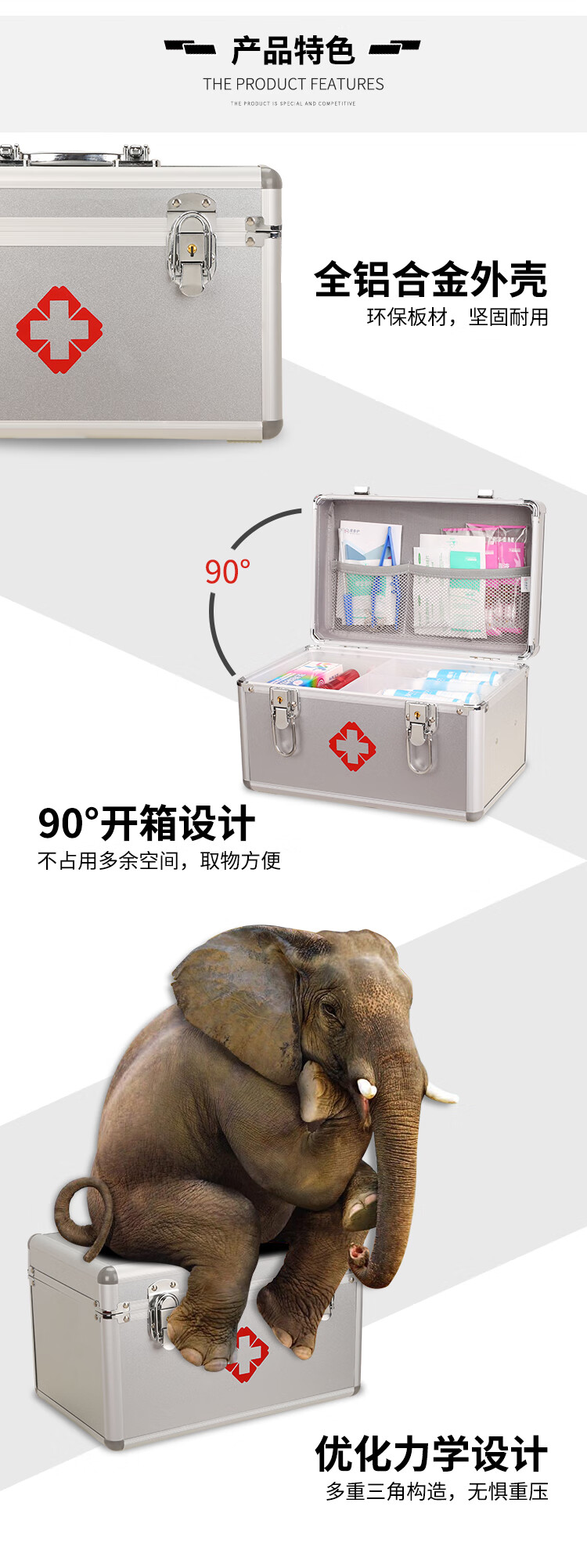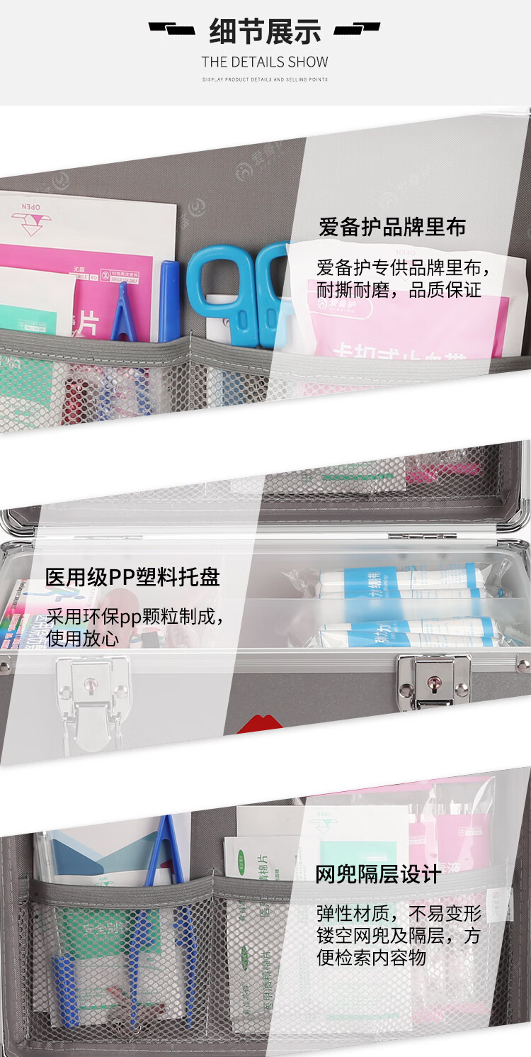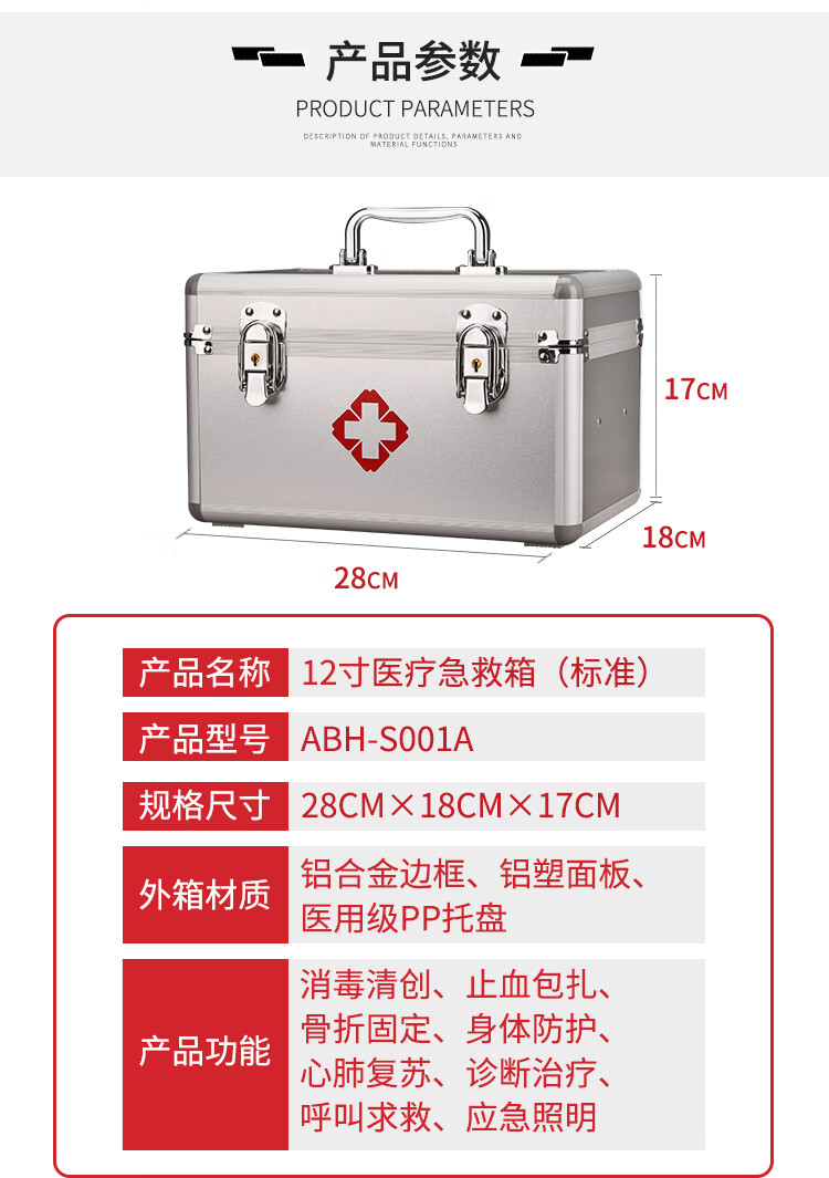 爱备护 急救箱套装家用全套用户外工地车载应急箱救援箱收纳箱 ABH-S001A 银色 单位:个