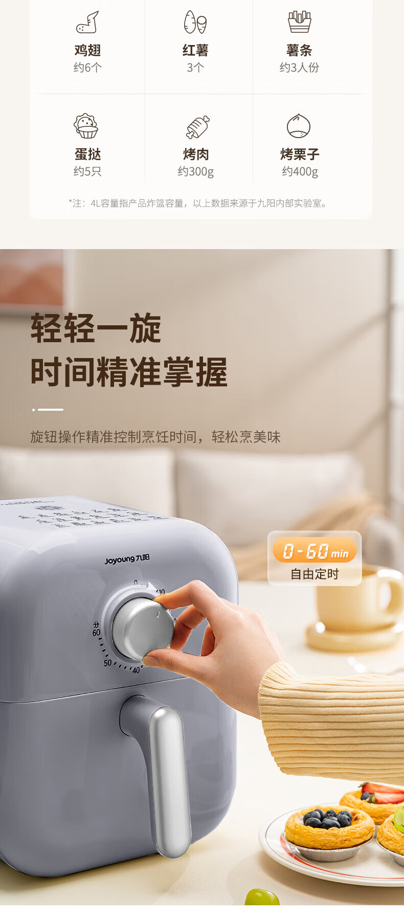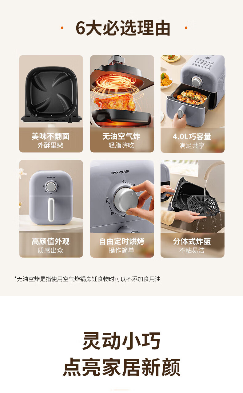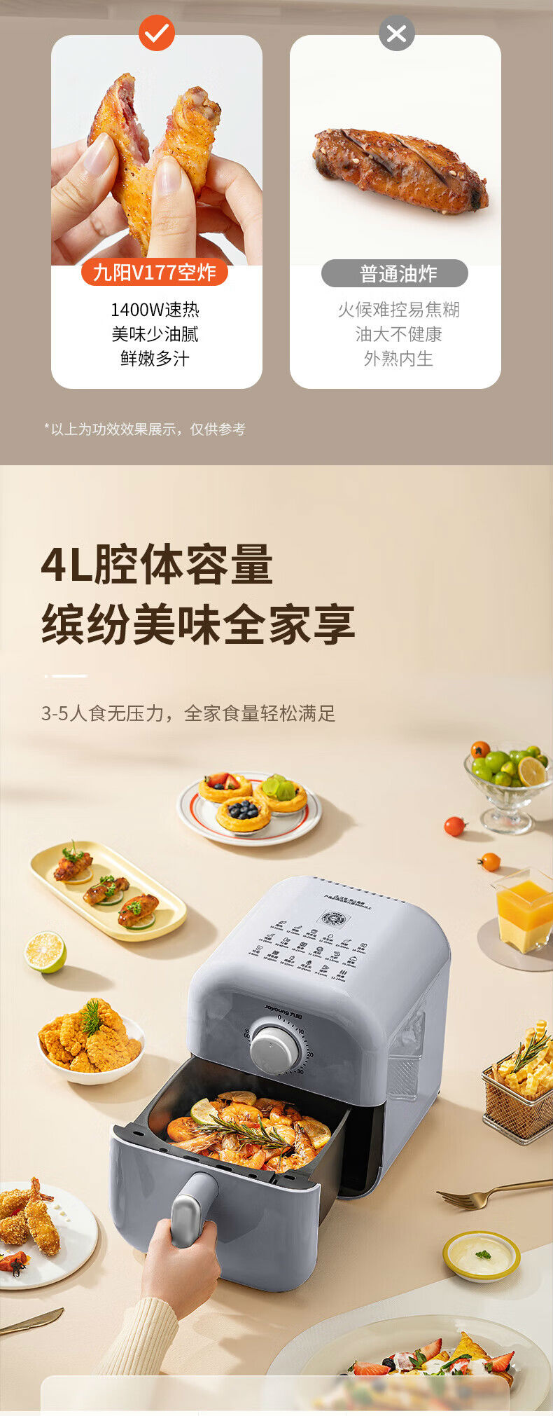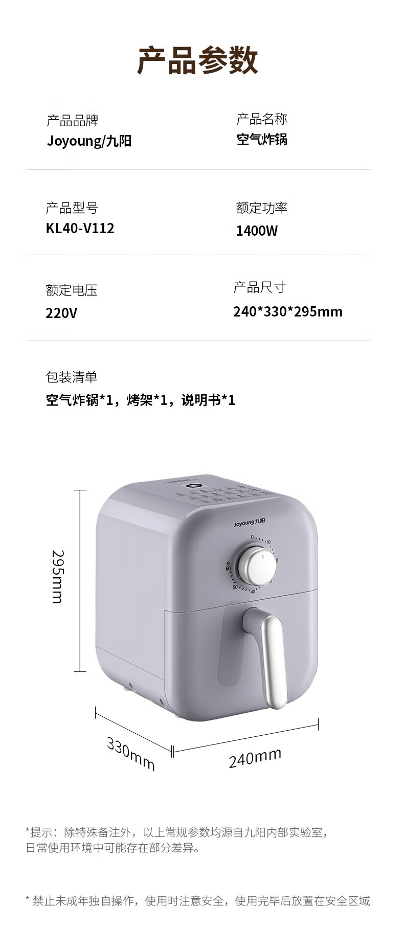 九阳 家用多功能大容量定时空气炸锅KL40-V112 4L