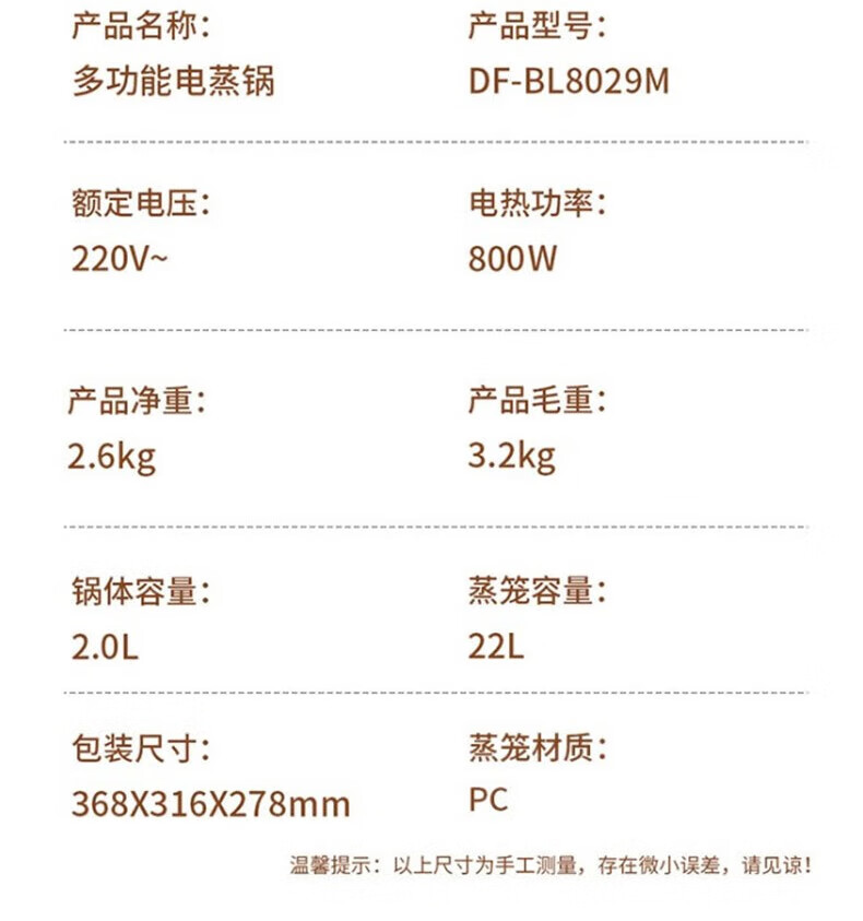 联创 三层随意组合大容量多电蒸锅 DF-BL8029M