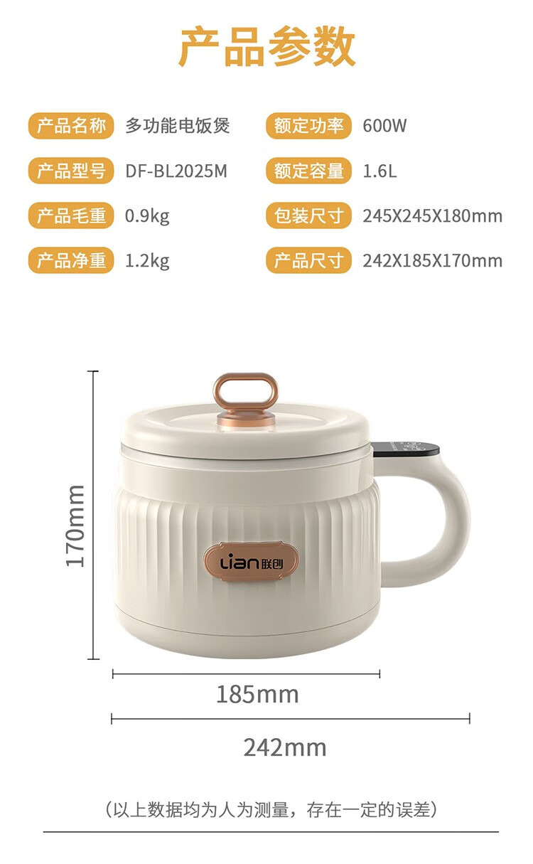 联创 多功能锅电饭煲 DF-BL2025M 纯白 1.6L