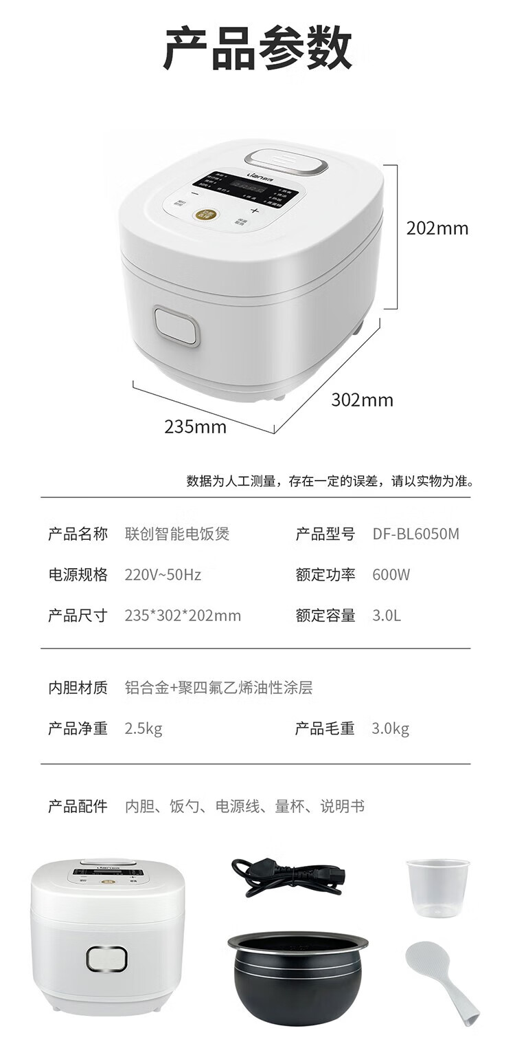联创 多功能电饭锅煮饭锅 煮粥锅不粘锅3L DF-BL6050M