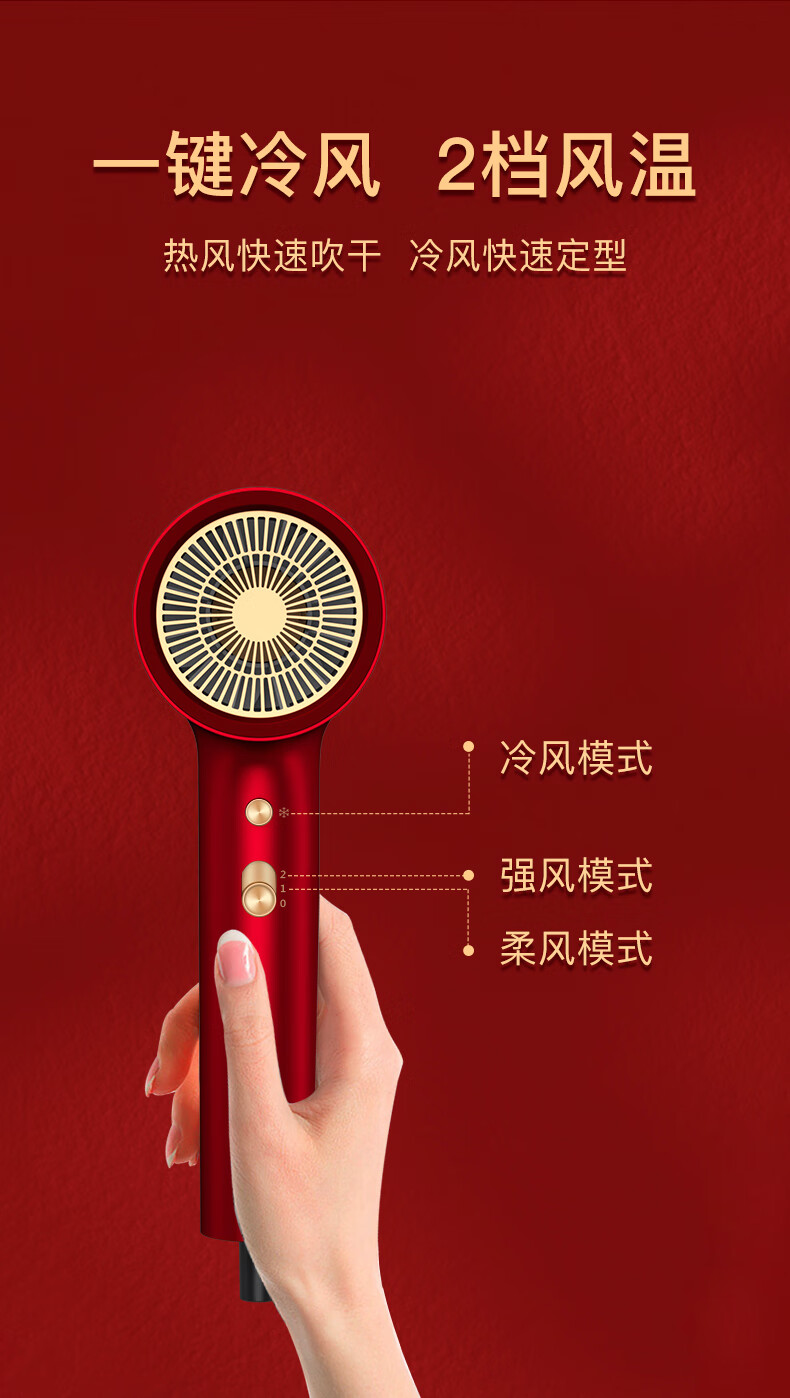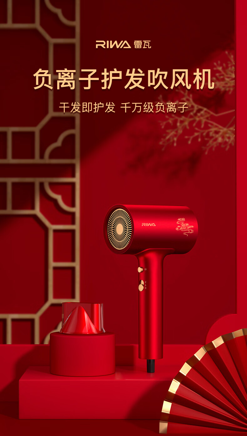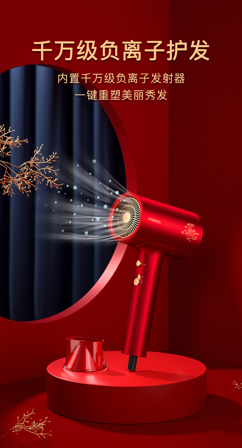 雷瓦 大功率吹风机负离子双档温控 冷热风干发家用电吹风机RC-7811