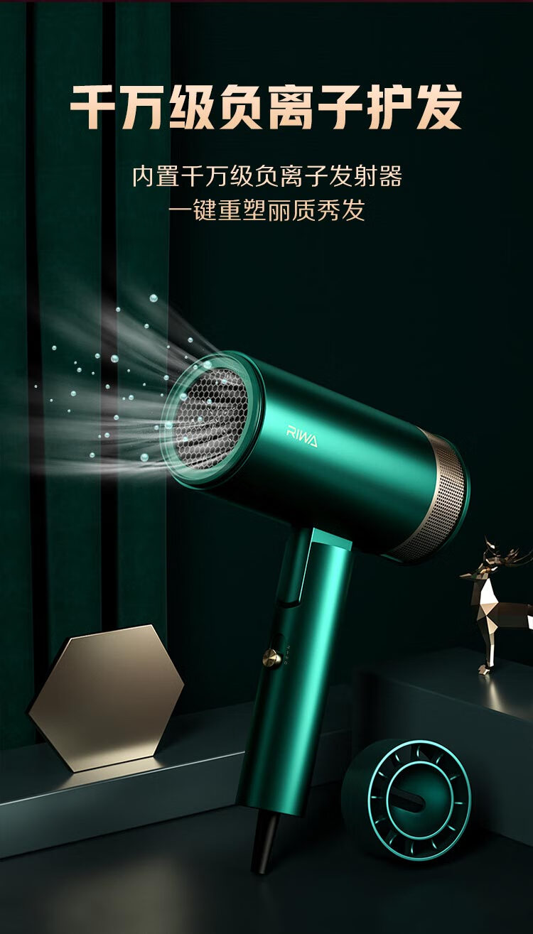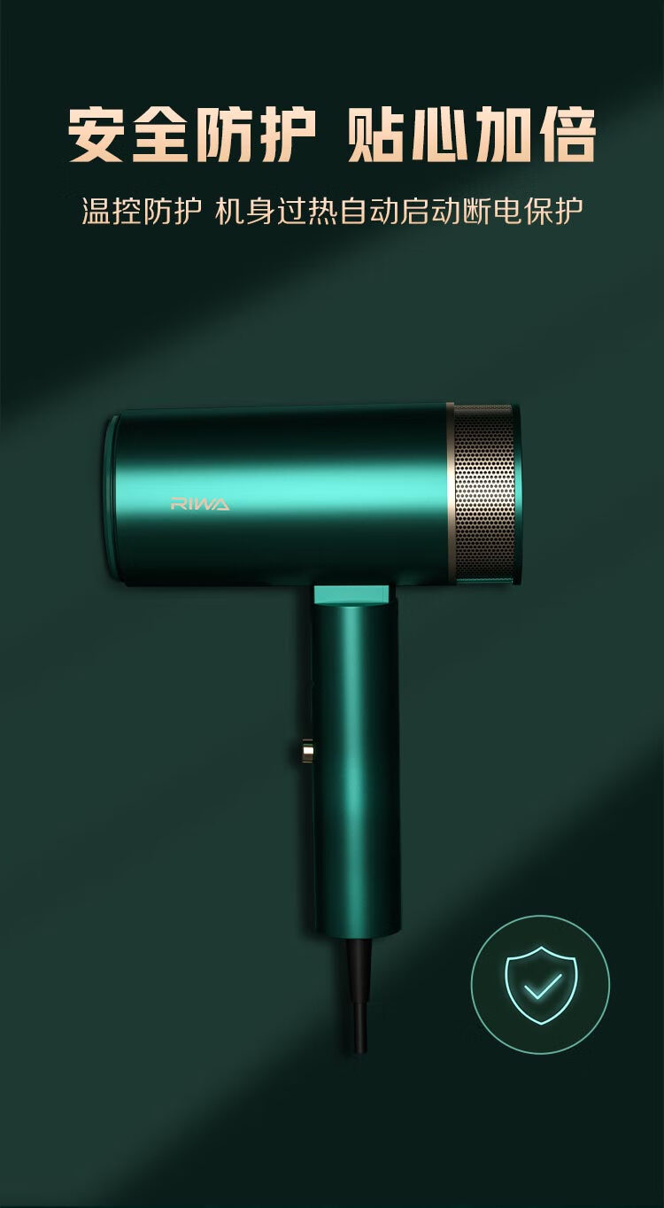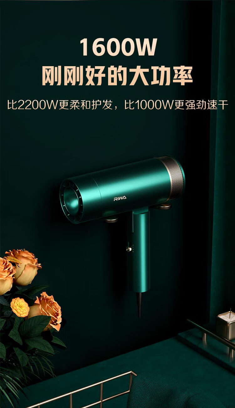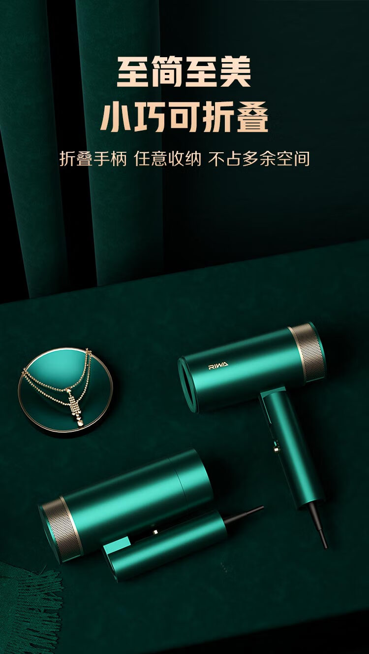 雷瓦 可折叠1600W大功率电吹风机恒温速干双重温控保护风家用便携负离子吹风机RC-7800