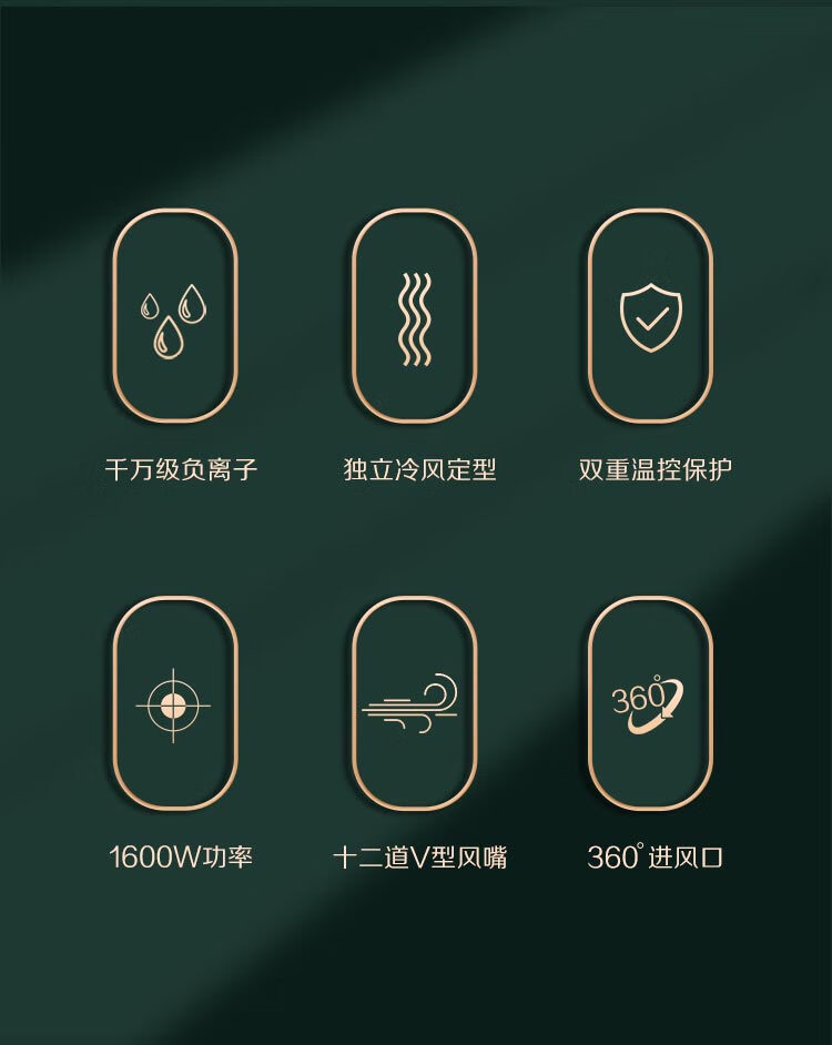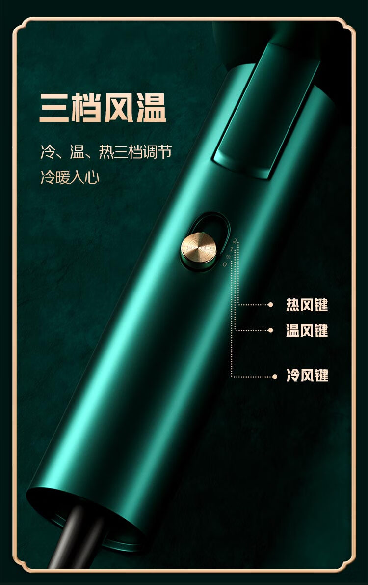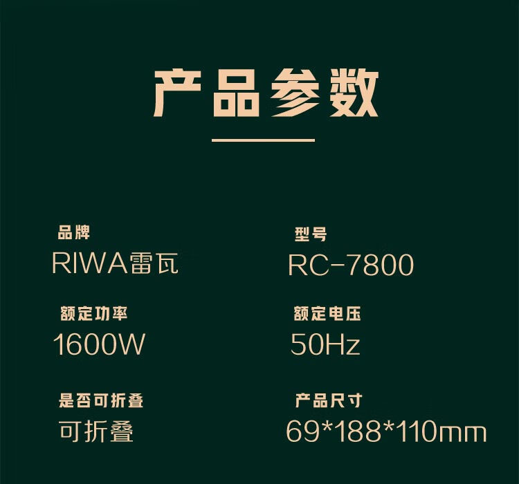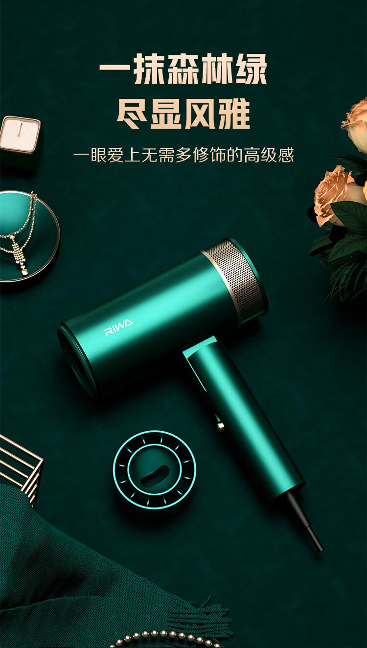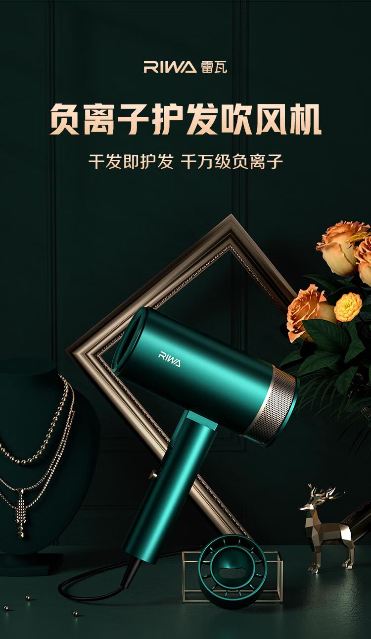 雷瓦 可折叠1600W大功率电吹风机恒温速干双重温控保护风家用便携负离子吹风机RC-7800