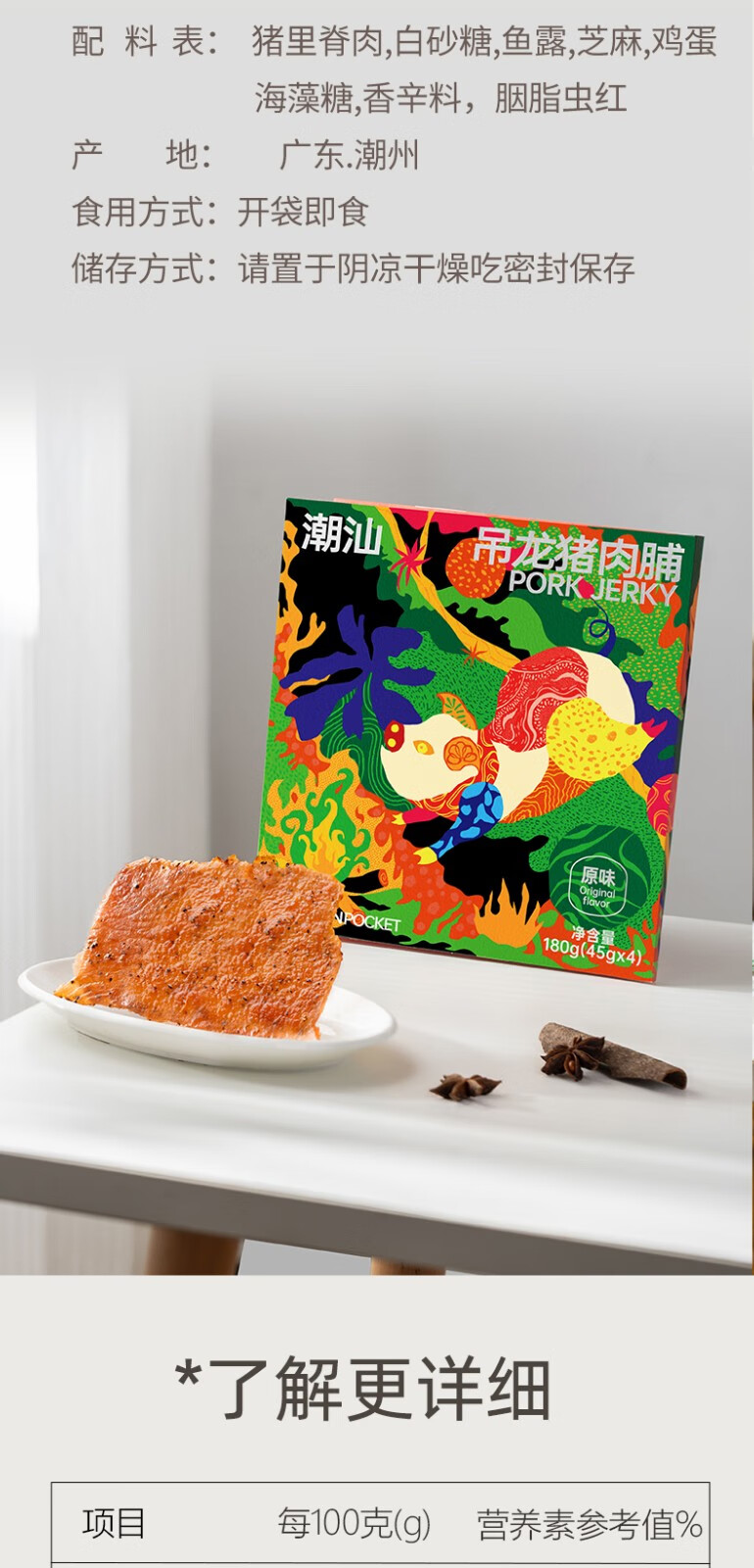 幸福口袋 潮汕吊龙猪肉脯盒装原味 180g 1盒