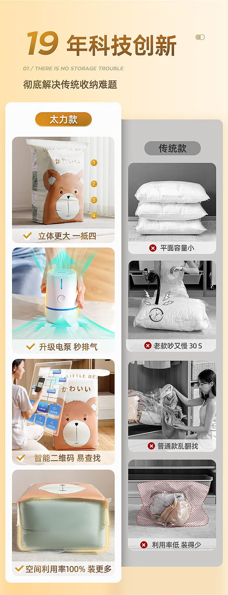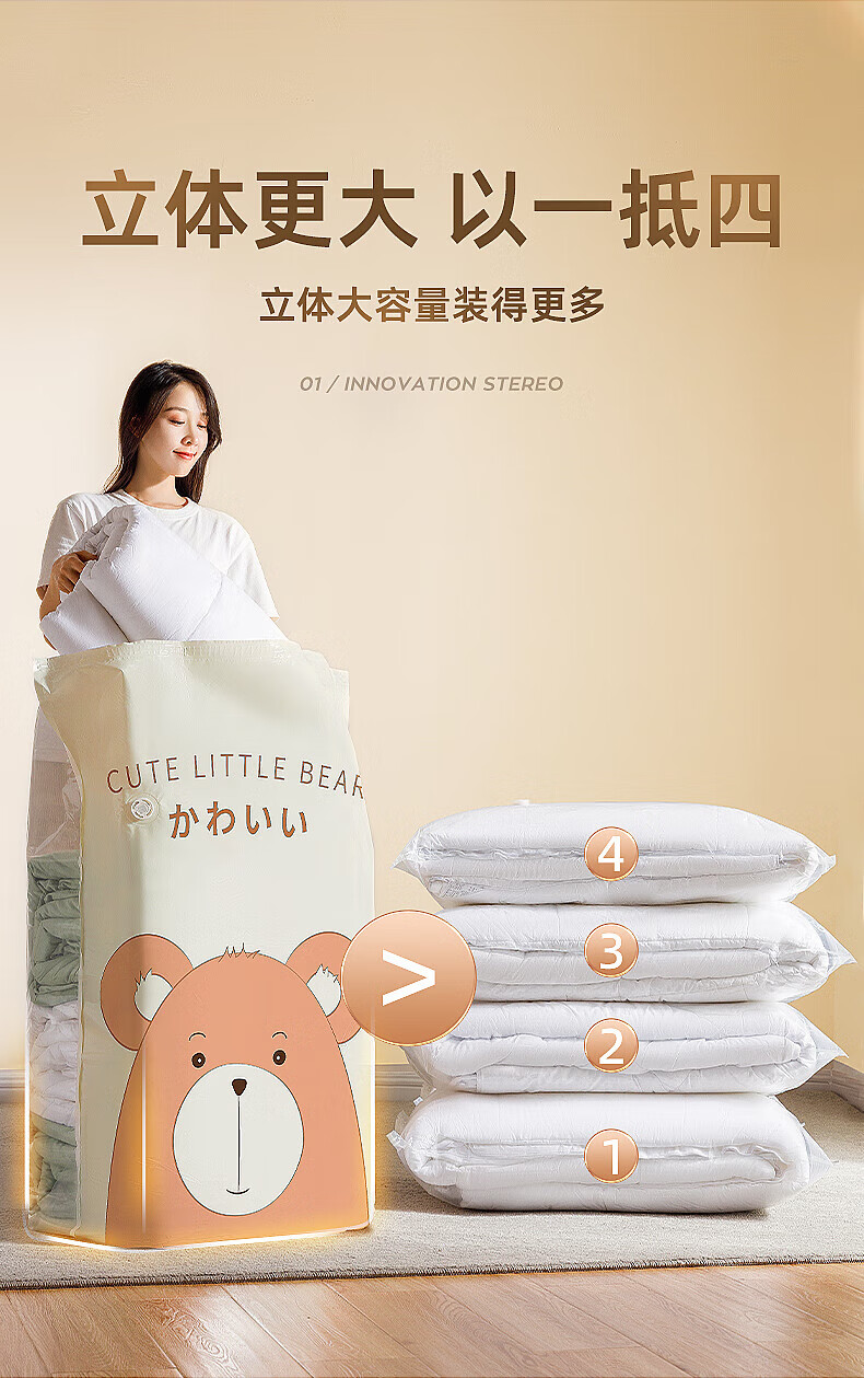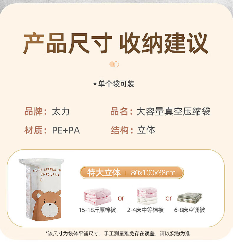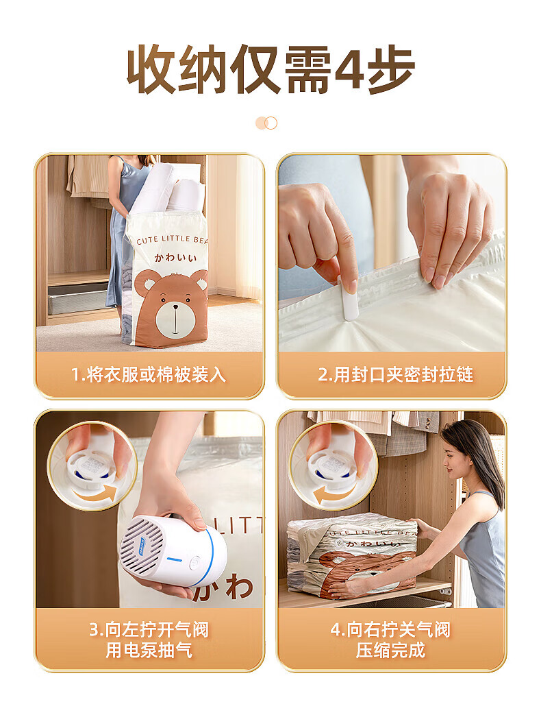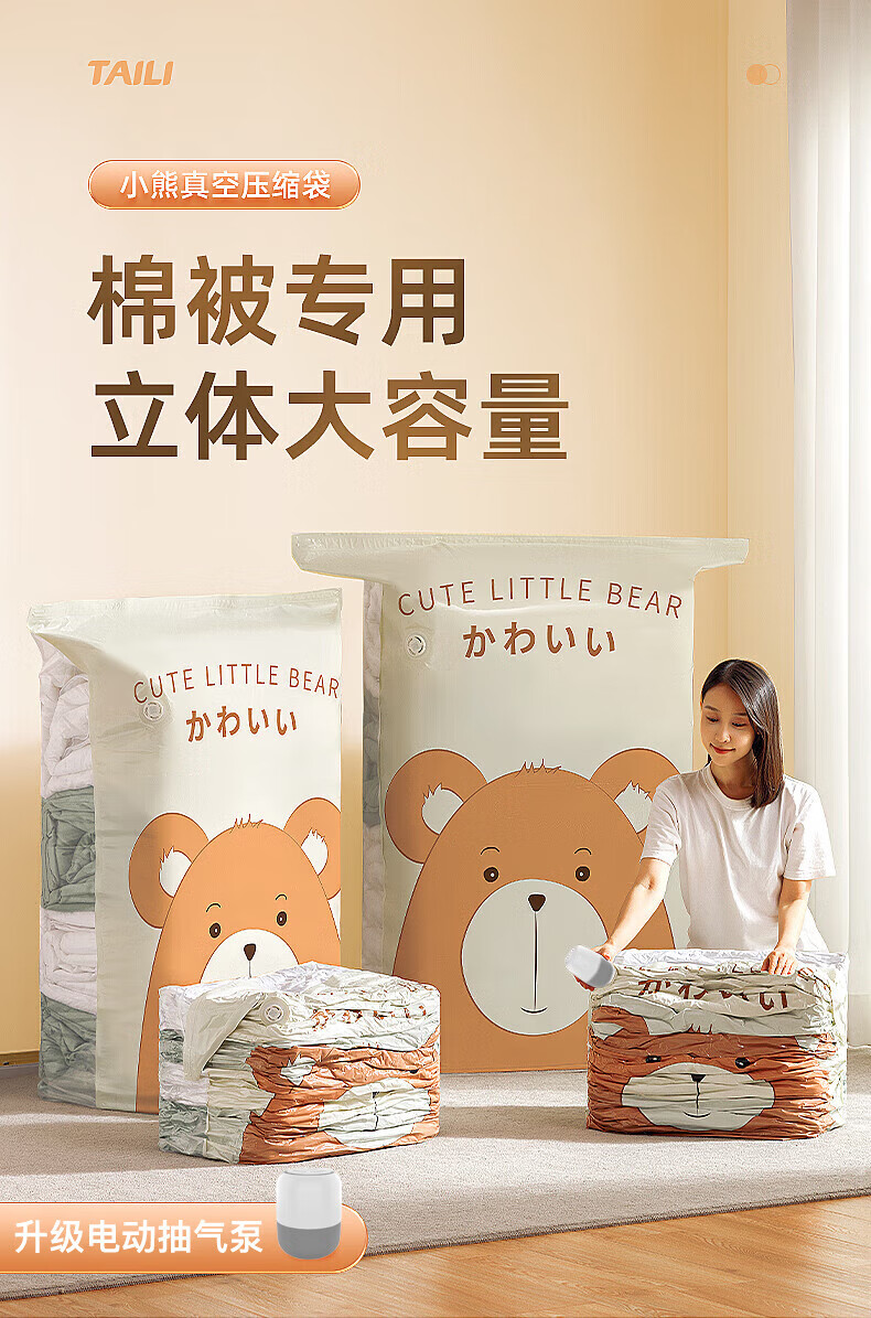 太力 真空压缩袋小熊款AZ362 4特大立体1电泵