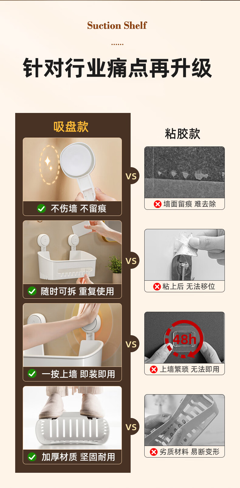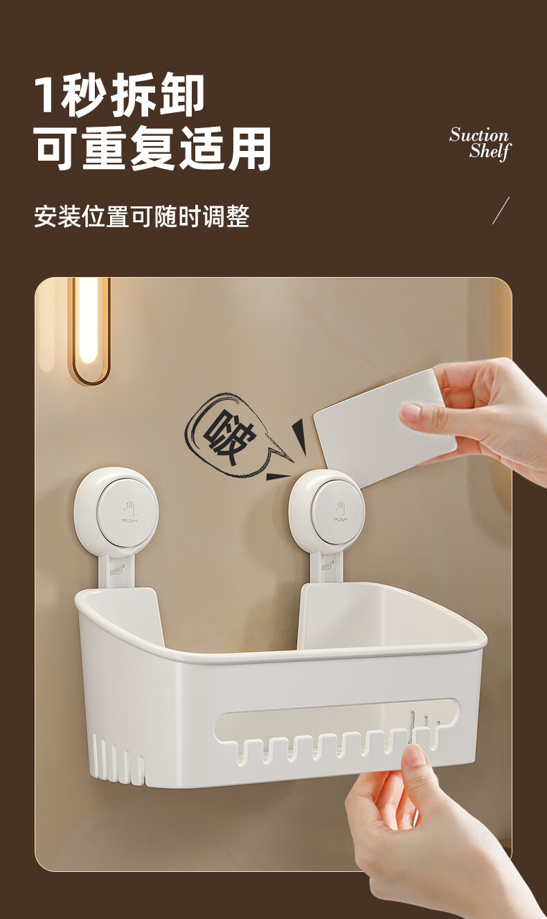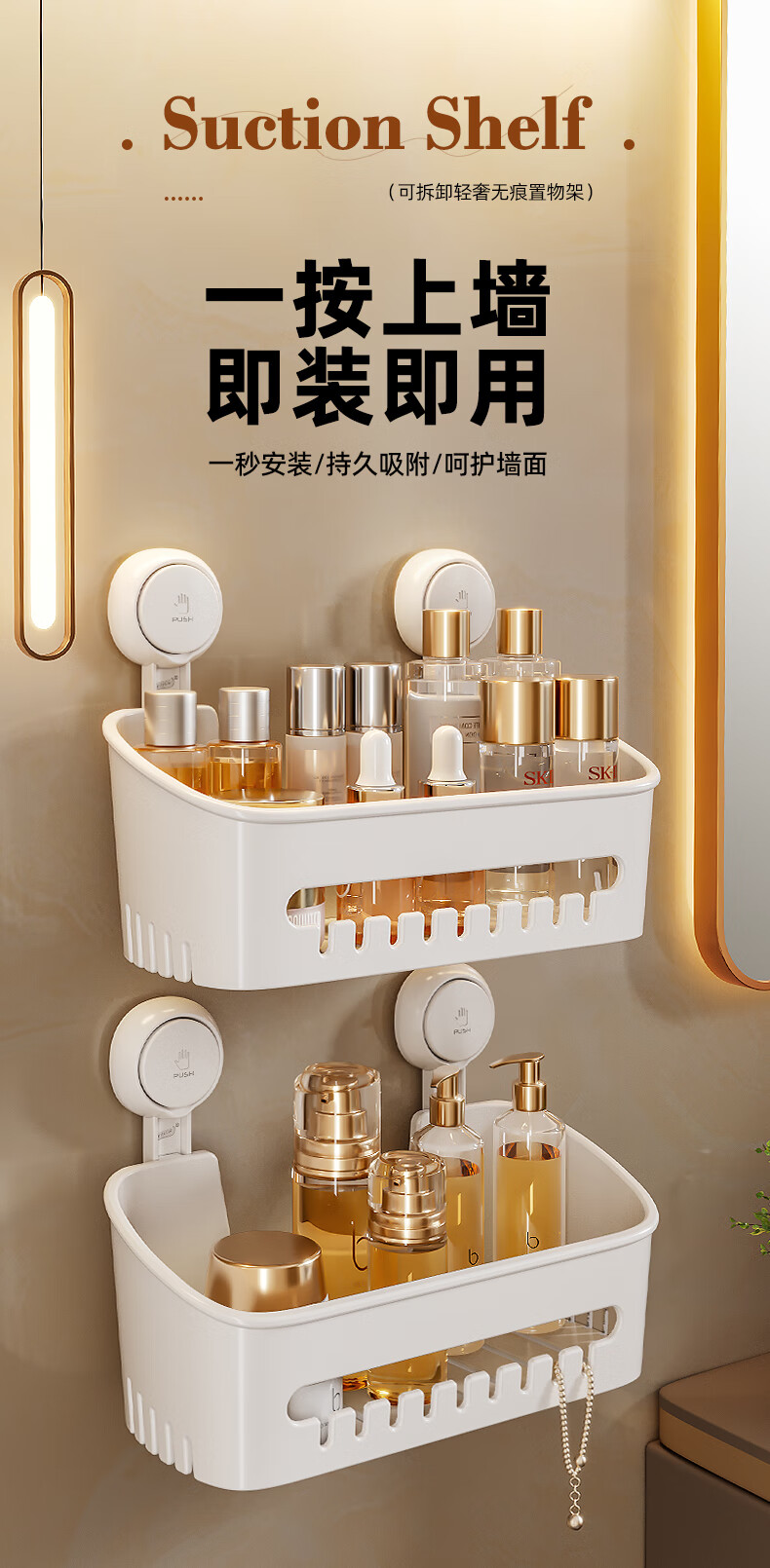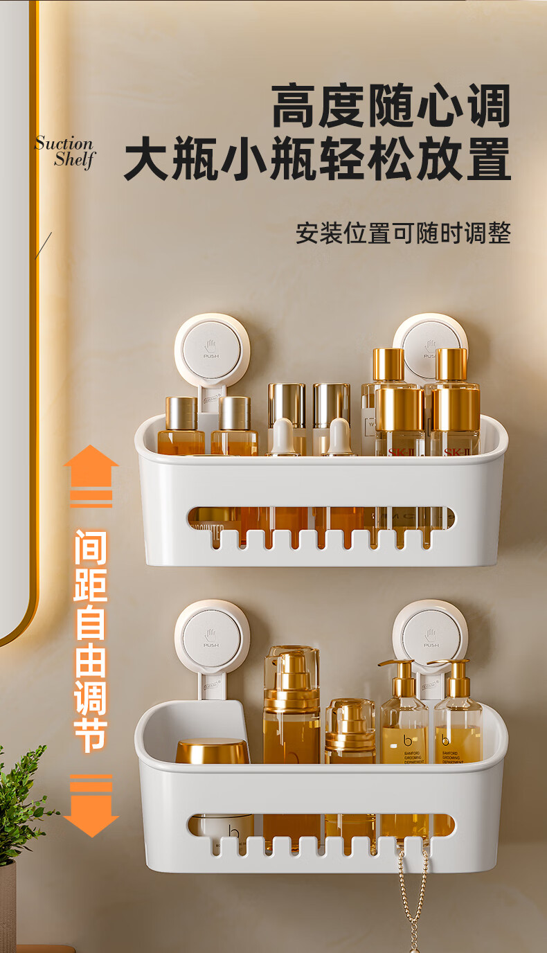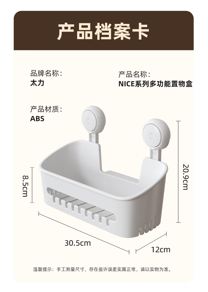 太力 浴室置物架免打孔卫生间置物架壁挂厕所吸盘收纳盒1个AW639 30cm