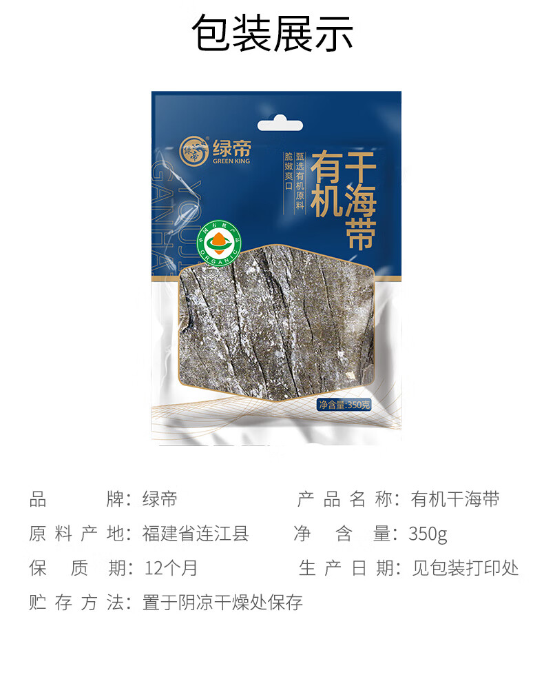 绿帝 有机干海带350g