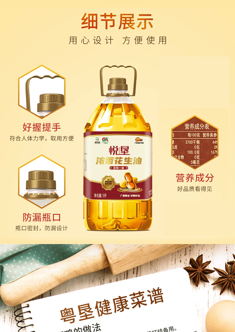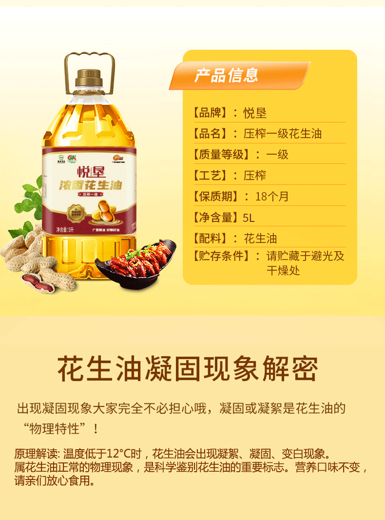 广垦 悦垦浓香压榨花生油5L