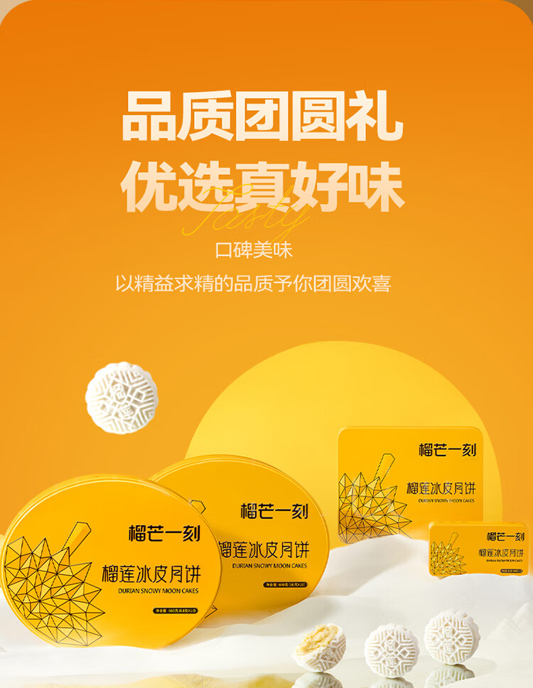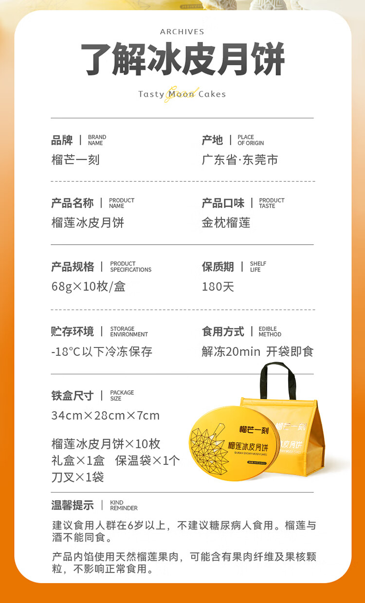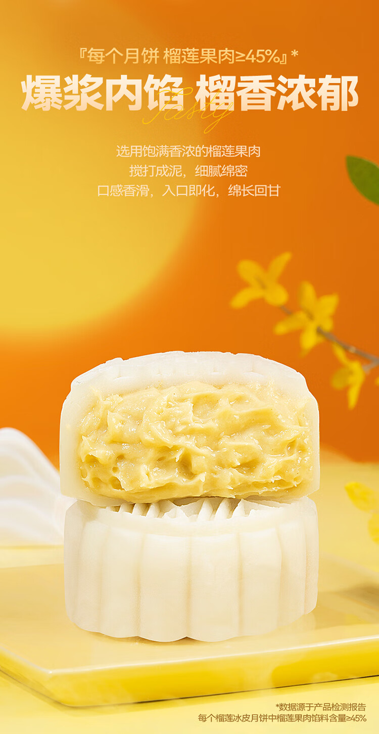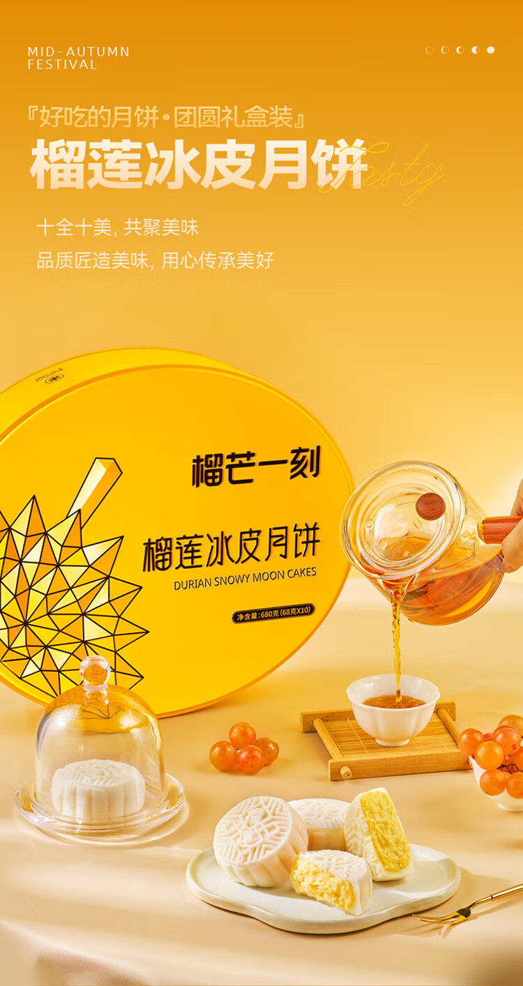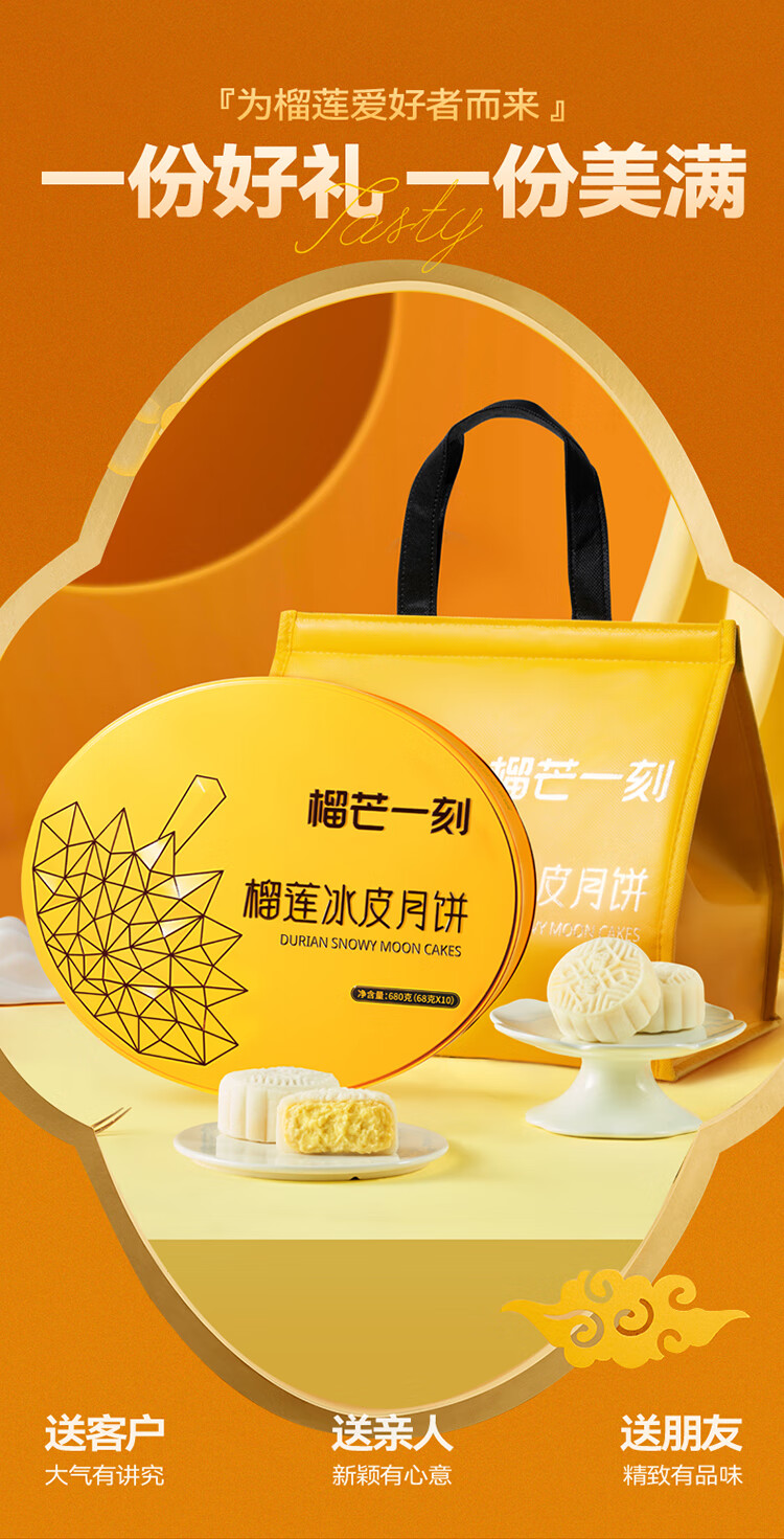 榴芒一刻 金枕榴莲冰皮月饼680g*1盒68g*10枚装