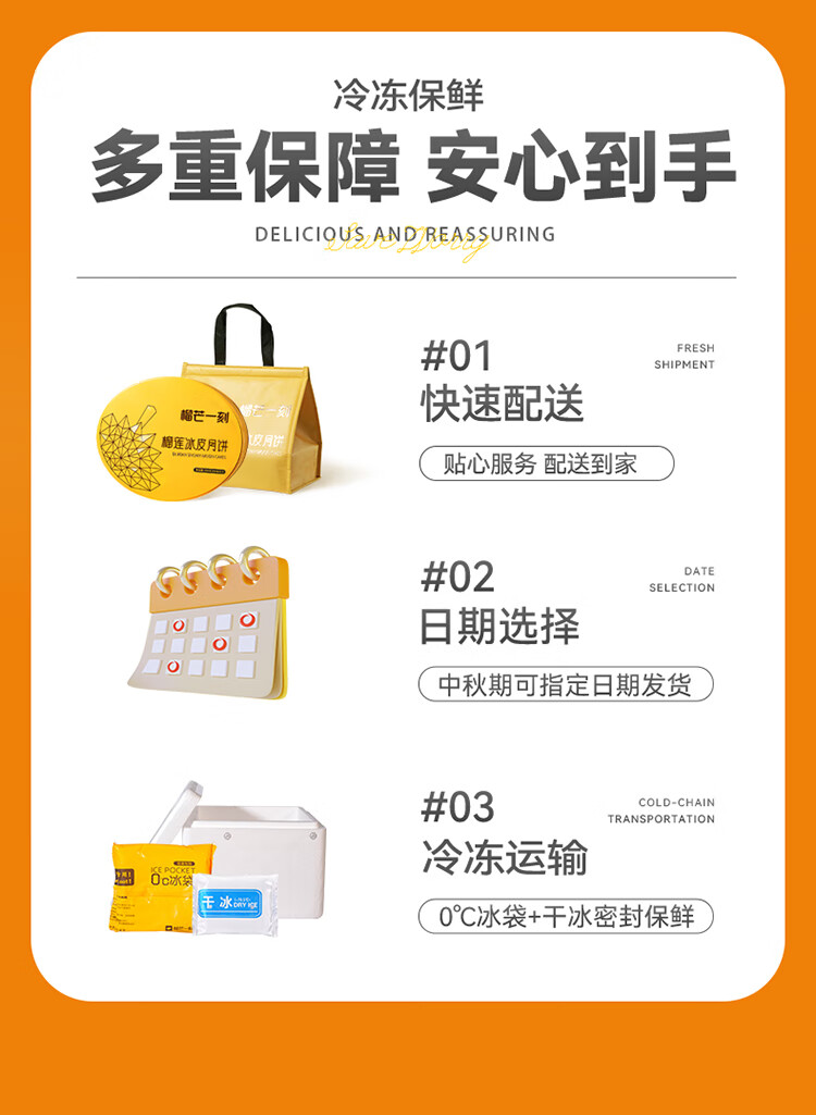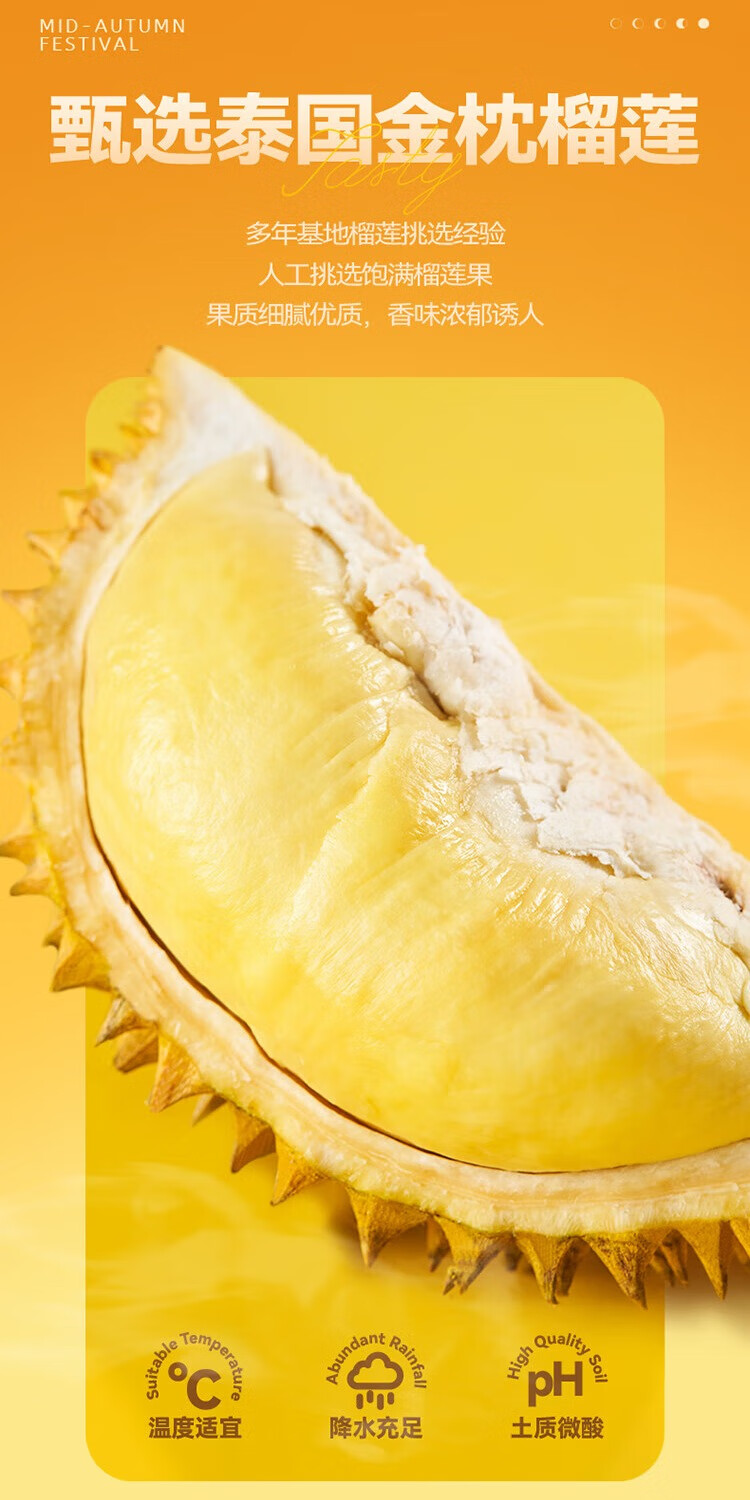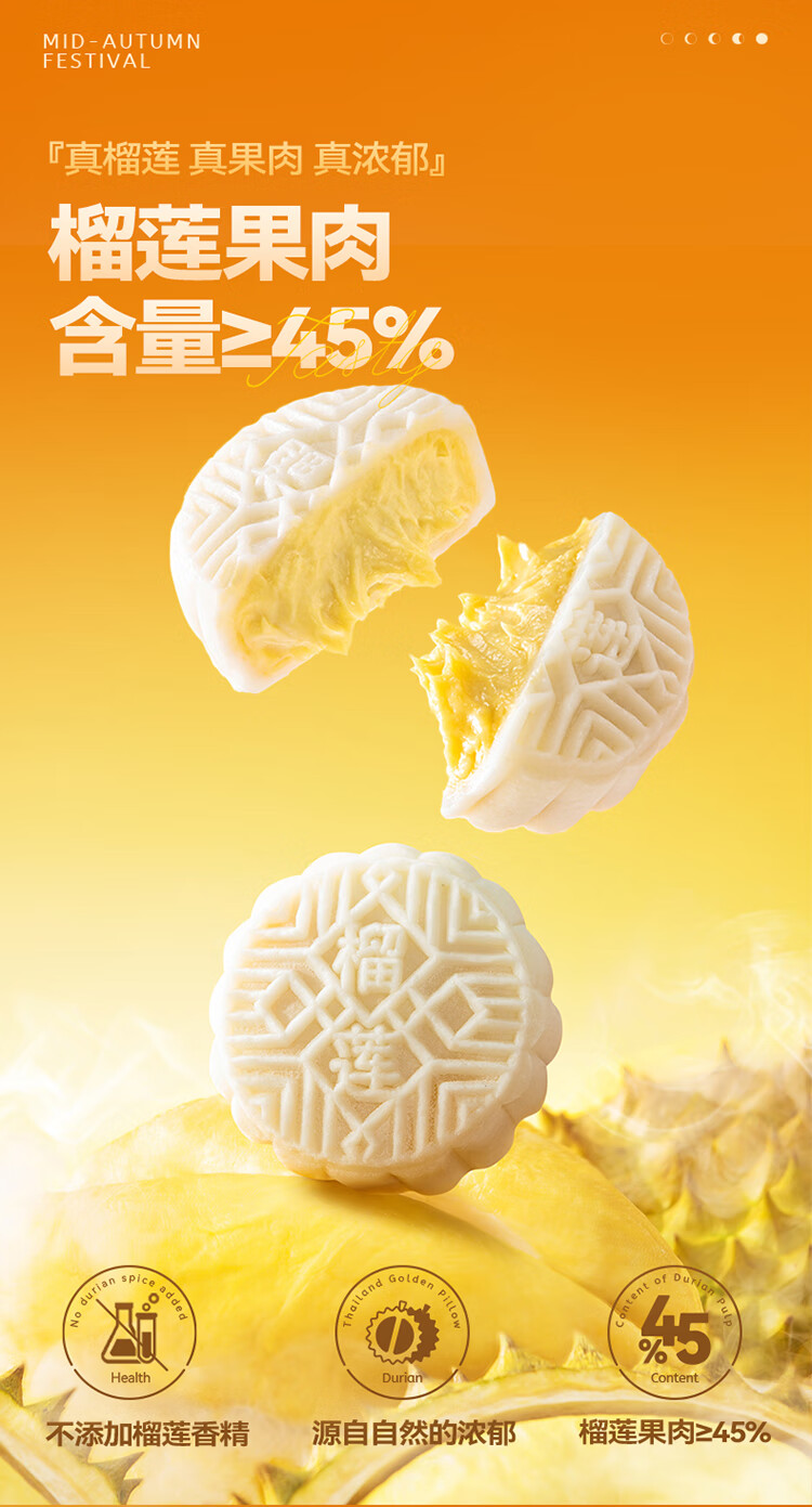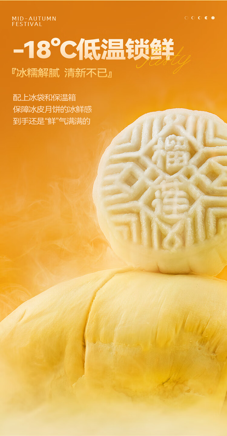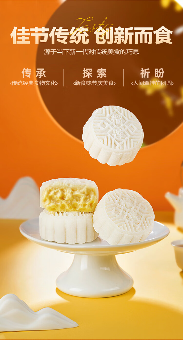 榴芒一刻 金枕榴莲冰皮月饼680g*1盒68g*10枚装